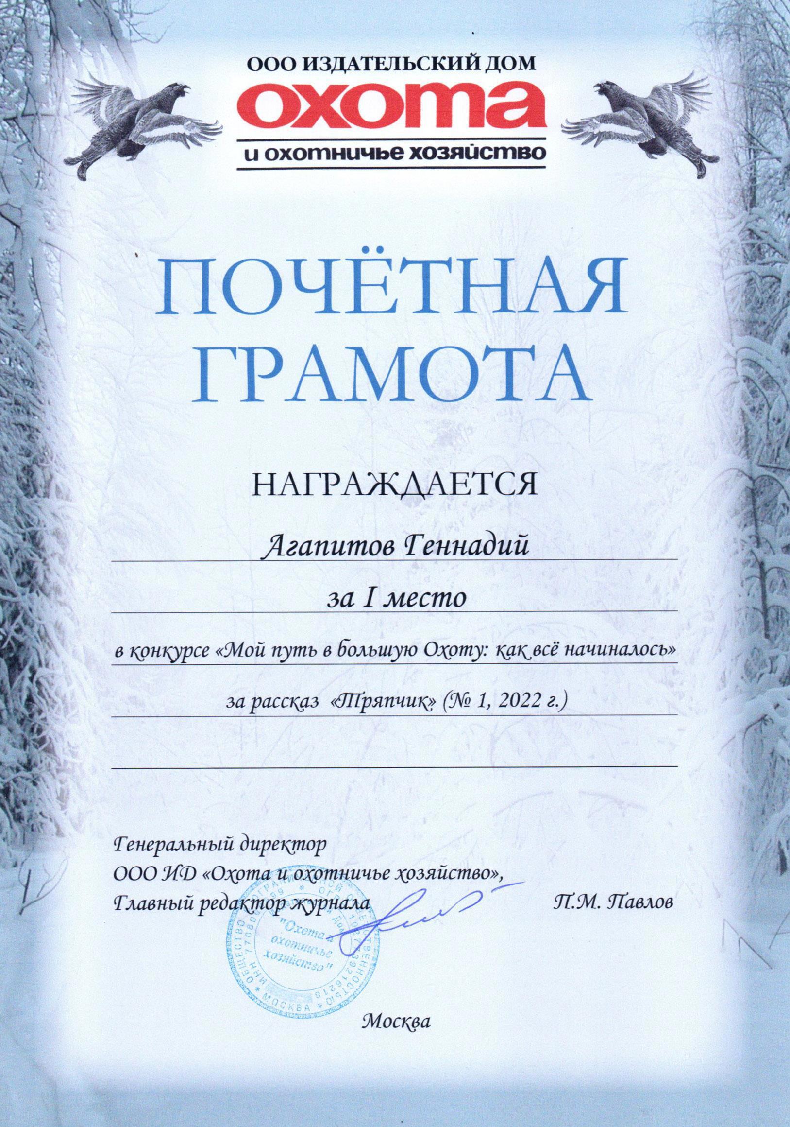 Автор: Агапитов ГеннадийСпешу поделиться радостью: мой рассказ "Тряпчик" занял I место на Всероссийском конкурсе.