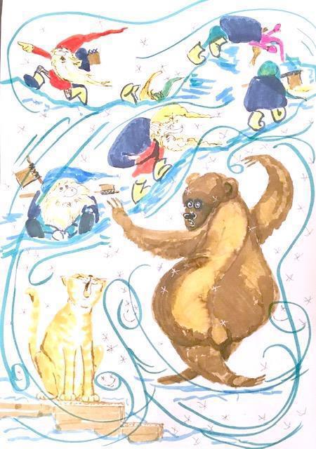 Иллюстрация от Елены Бабинцевой для Лушки_Зо к стихотворению "Варежки и лыжи"