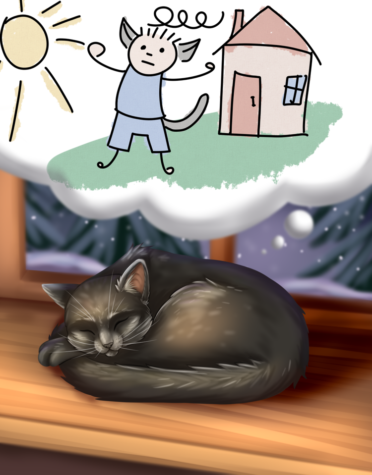 Иллюстрация от Miragin для Роберта Морра к стихотворению "Если б я был котом"