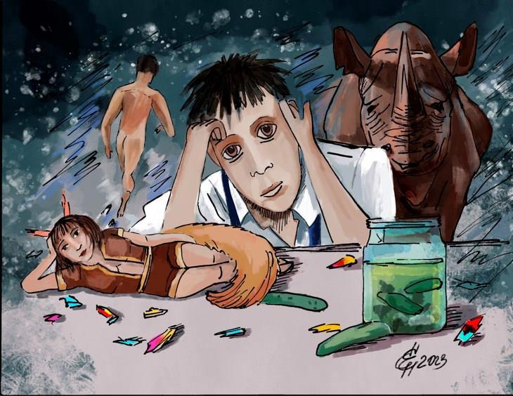 Иллюстрация от Elena Alimpieva для Анатолия Ландышева к стихотворению "Кактус на голове"
