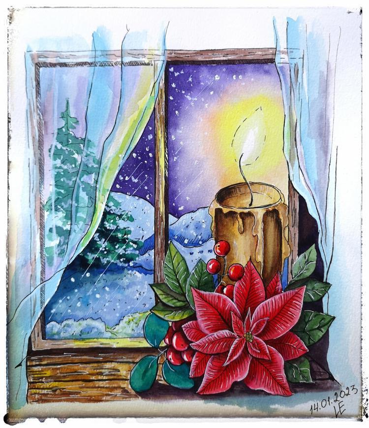 Иллюстрация от Агрипины для Peony Rose к стихотворению "Свеча в рождественскую ночь"