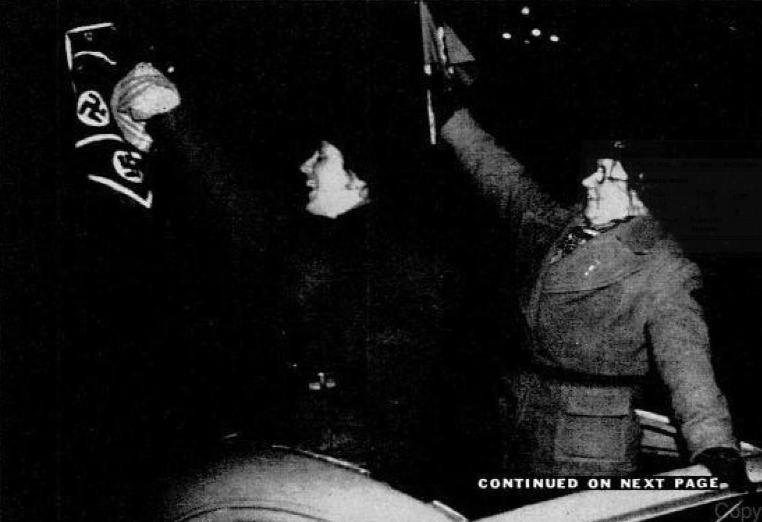 Гувер сказал Гитлеру 8 марта, что Америка не верит, что социальный прогресс возможен без интеллектуальной свободы. Не заботясь об интеллектуальной свободе, венские домохозяйки, подобные тем, что сидят в такси ниже, тысячами выходили на улицы, чтобы подбодрить нацистские войска.