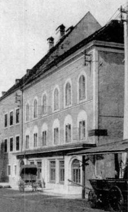 Место рождения Гитлера в Браунау, австрийском пограничном городе (20 апреля 1889 года), сейчас представляет собой таверну с розовой штукатуркой.