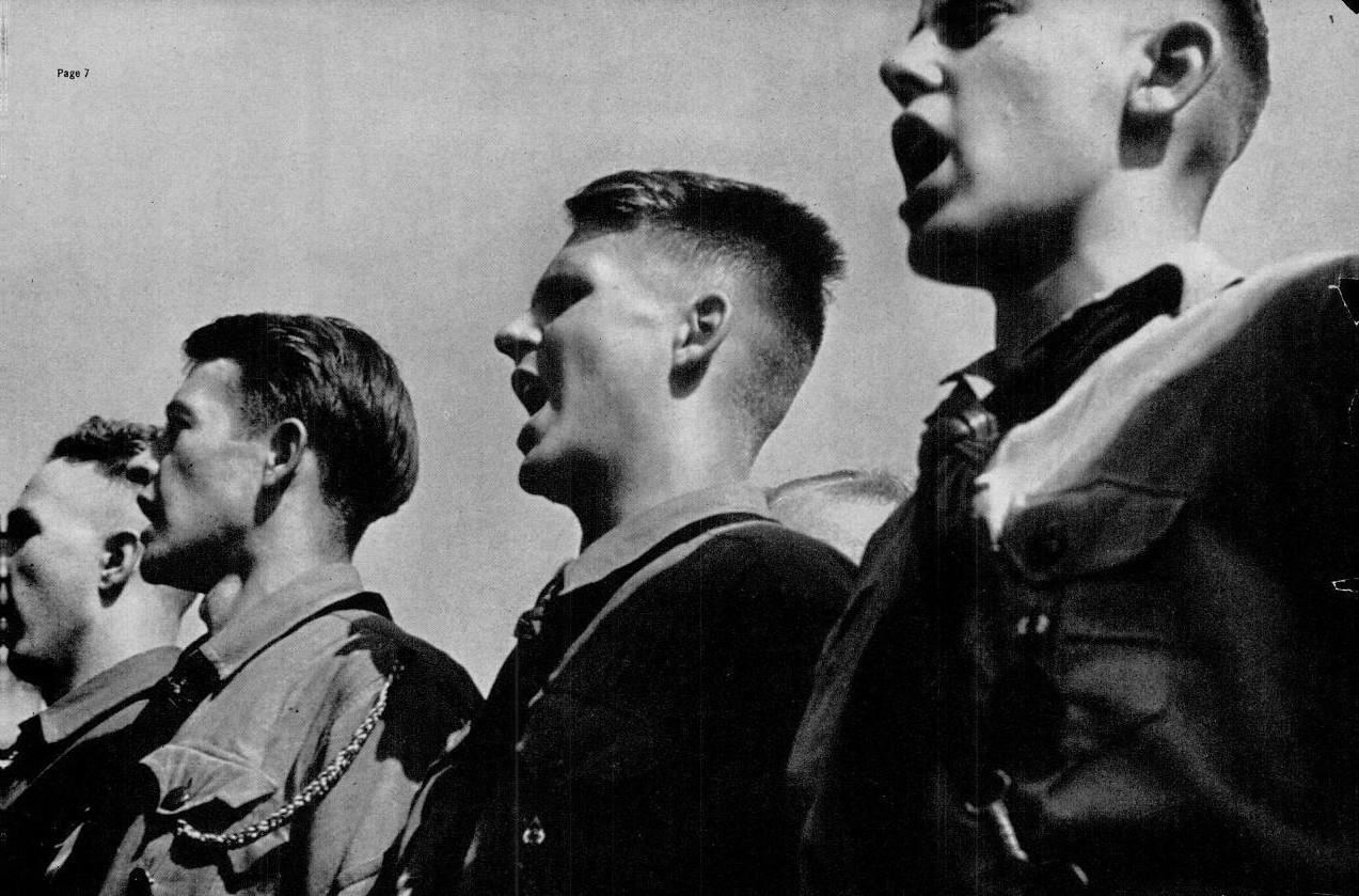 Теперь 73.000.000 немцев должны петь песню, которую он написал, Horst Wessel Lied. Петь легко, потому что слова волнующие. Мелодия - старая немецкая народная песня.