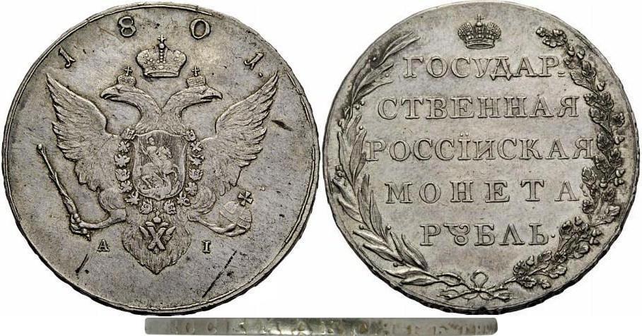 К слову, этот стандарт не менялся до 1915 года, когда был отчеканен последний серебряный рубль Российской Империи. Чего нельзя сказать о дизайне монеты: взошедший на престол Александр I немедленно его поменял: (фото из интернета):