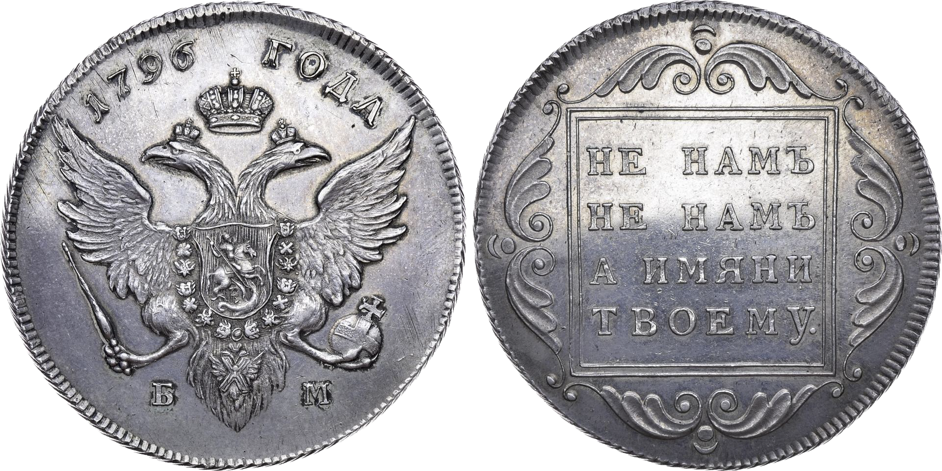 Павлу внезапно пришла в голову идея, что российскому рублю пойдет на пользу, если он окажется приравнен по весу и цене к популярному в Европе талеру. Так появилось странное детище, вошедшее в историю как "банковская монета". Она считалась рублем, но номинал на ней указан не был. По размеру, и, соответственно, весу она превышала рубли, находившиеся в обороте, и фактически стоила 1 рубль 41 копейку. Но самым непривычным был дизайн монеты (фото из интернета):