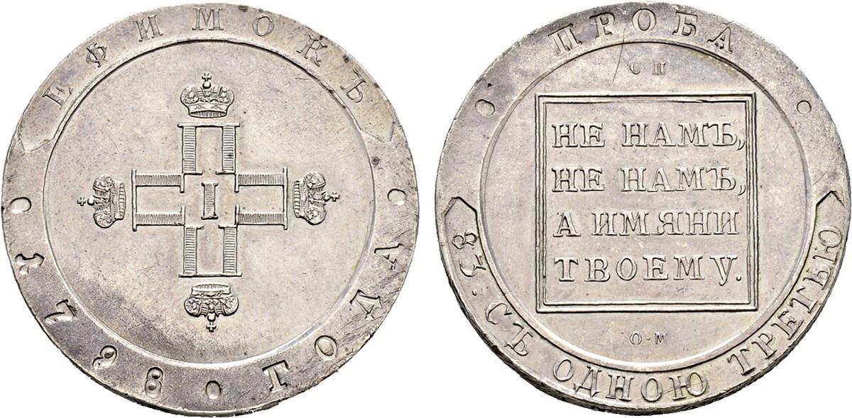 Нередко появление данной надписи на монете объясняют тем фактом, что Павел являлся Великим Магистром Мальтийского Ордена. Однако звание это Император принял лишь в конце 1798 года, а монета появилась двумя годами ранее! К тому же, Мальтийский орден наследовал вовсе не тамплиерам, а госпитальерам!