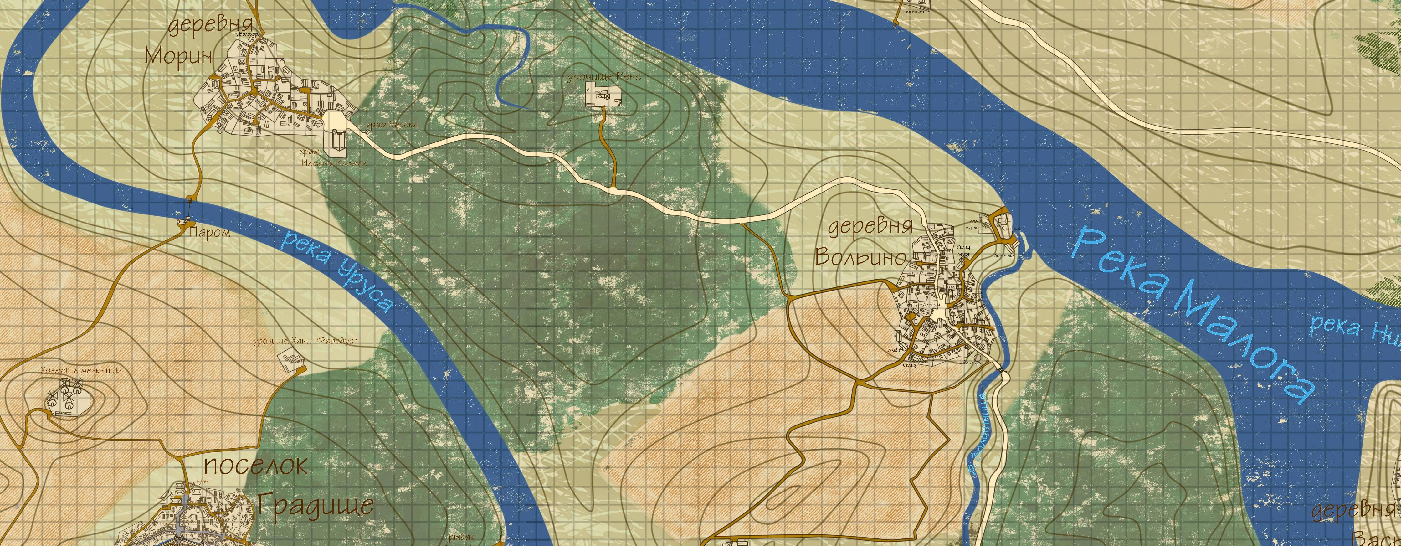 Урочище Ренс - почти посредине карты - в лесу к северу от дороги.