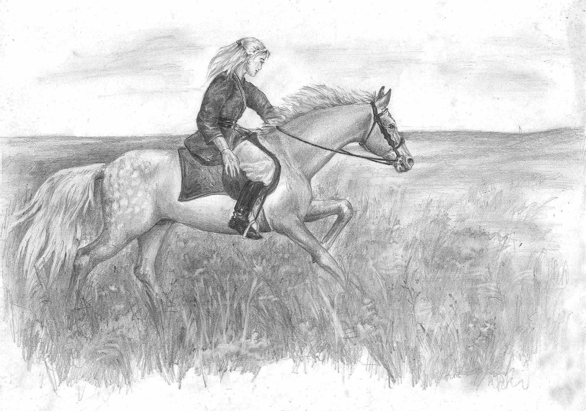 5. А тут - любовь Аширата. Самритская воительница - Хальга-Нар на своём конике (самритская порода низкорослых выносливых полудиких лошадок)