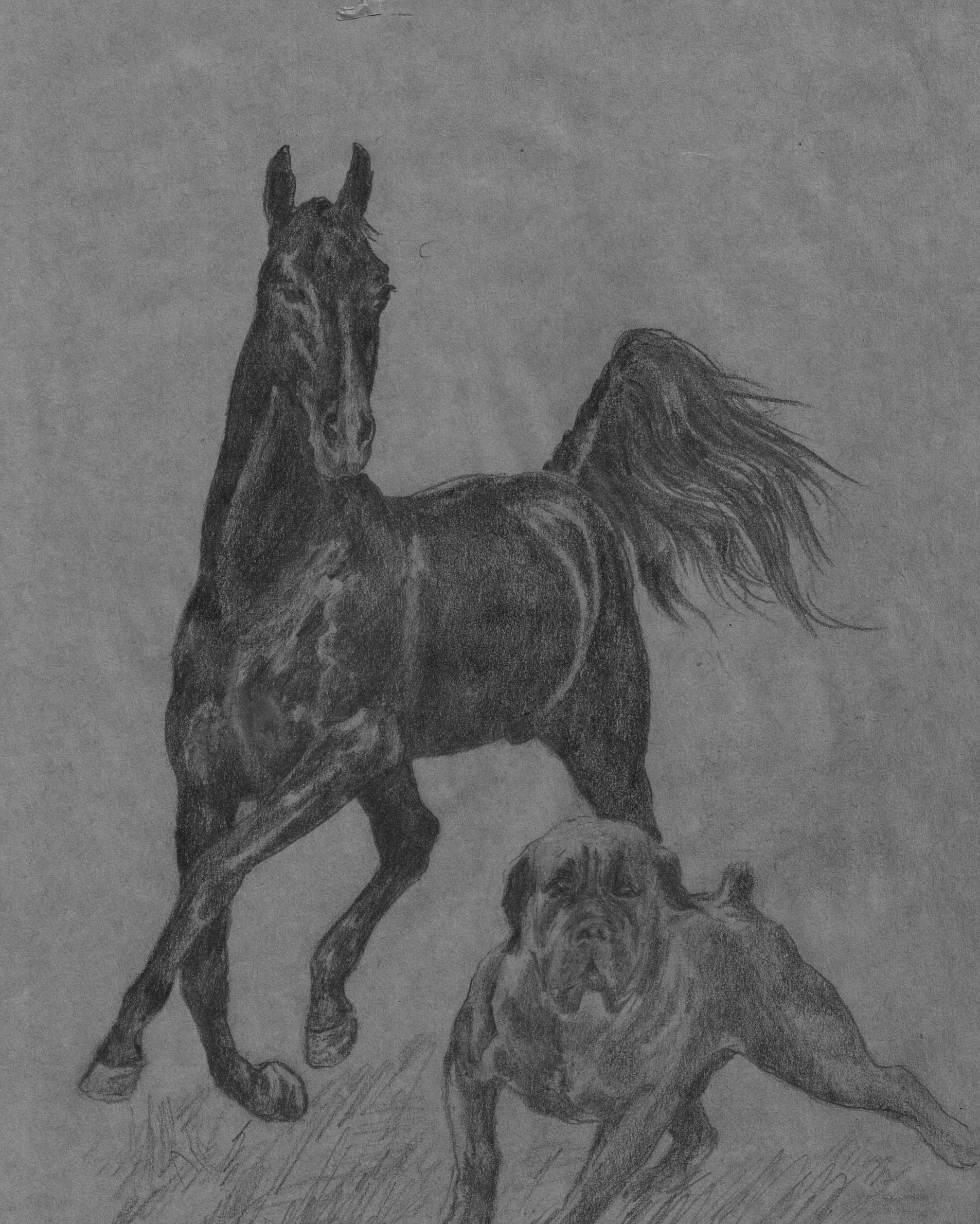 1. Конь Аширата - Каркут - и его верный друг - пёс Шаф, фасский мастиф.
