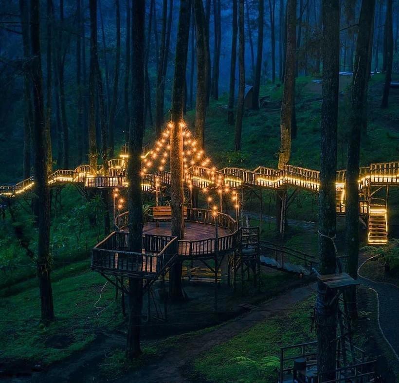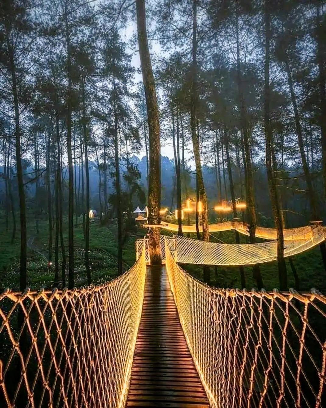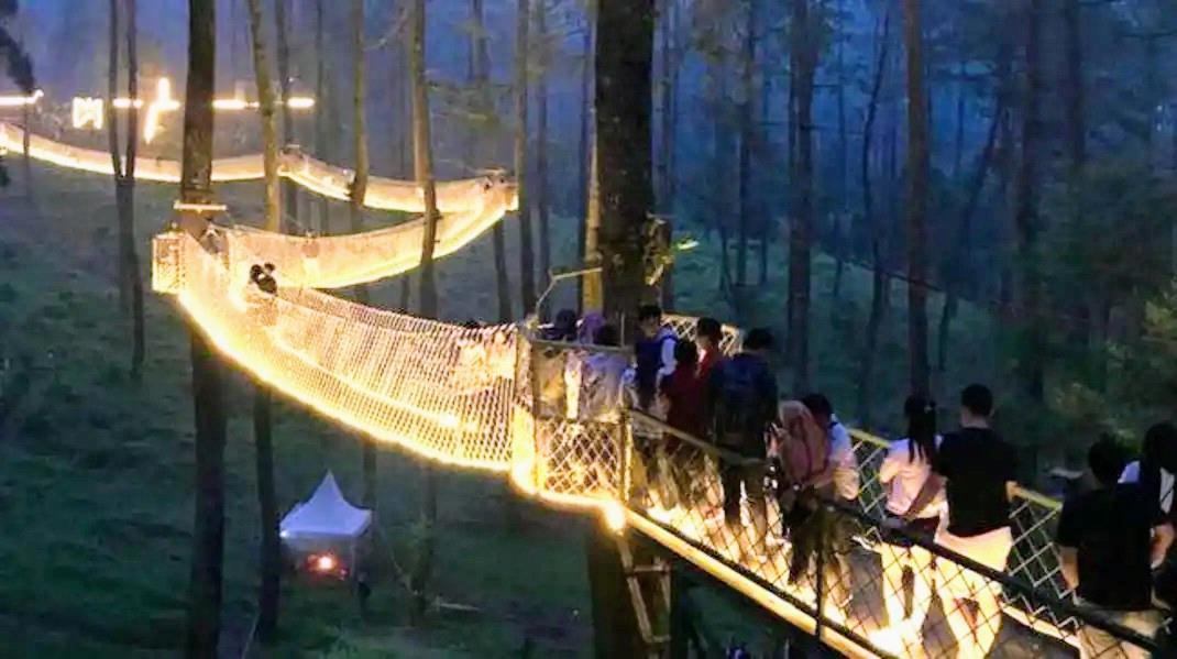 Всем любителям природы в этом лесу определенно понравится, причем в любое время суток. Между деревьями натянут подвесной мост, извилистый, со множеством поворотов.