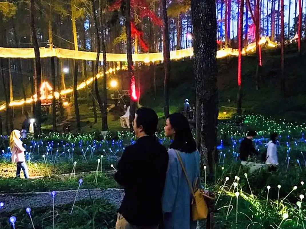 Если днем по нему можно гулять и рассматривать цветы, то с наступлением темноты лес вообще превращается в нечто волшебное. Все благодаря мосту: 125-метровое сооружение полностью подсвечивается на протяжении всей свой длины.