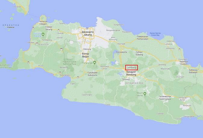 Лес орхидей Cikole в Лембанге, Западная Ява, Индонезия (выделено красным)