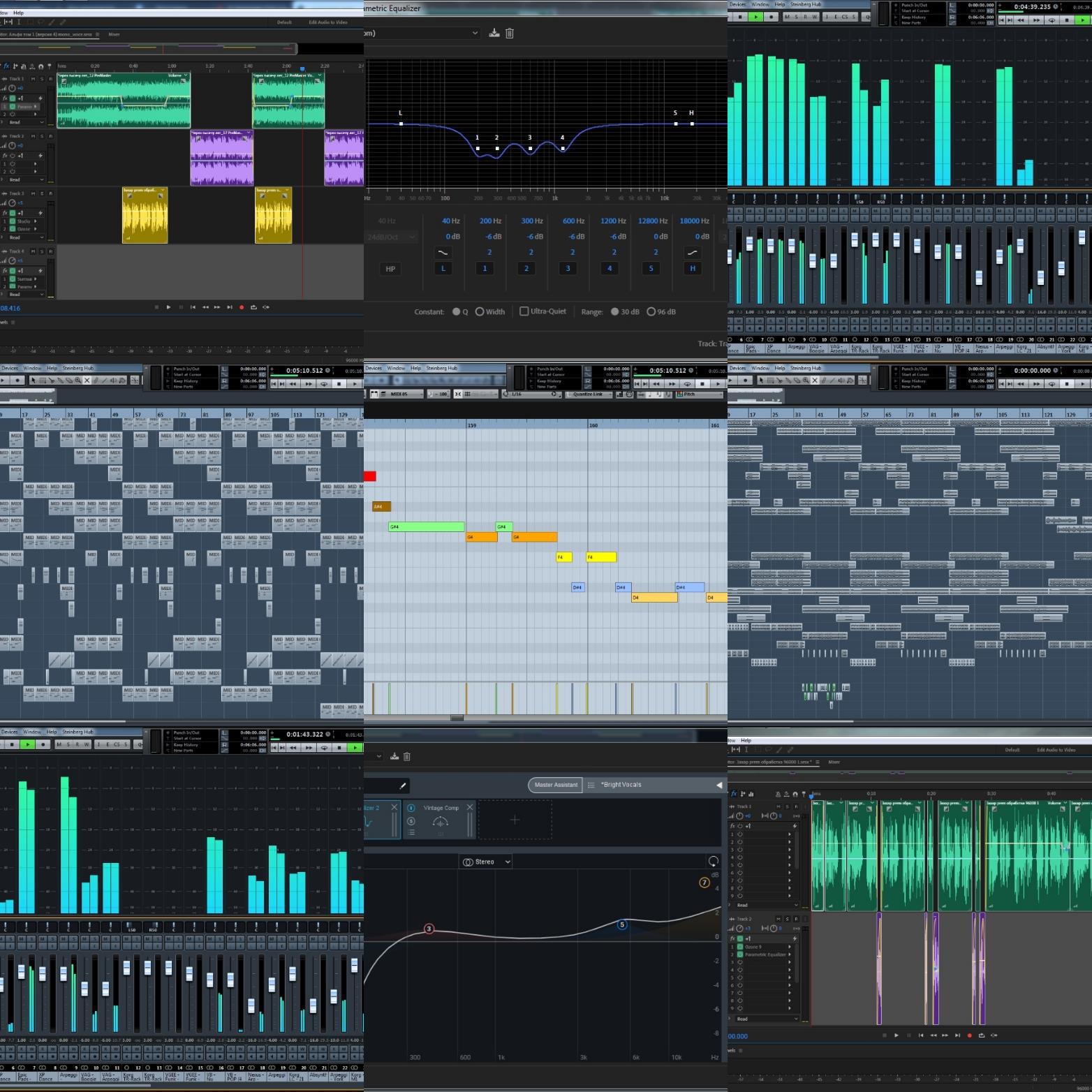 Идёт прослушка и вновь сведения. Я использую большое количество программных плагинов для обработки, как инструментов и ударных, так и голоса. Решив проблему с частотным наложением друг на друга, это называется звуковой маскировкой, я перехожу к следующему этапу.