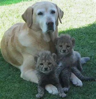А эти маленькие гепардики считают мамой собаку лабрадора. Она не против. Чужих детей не бывает.