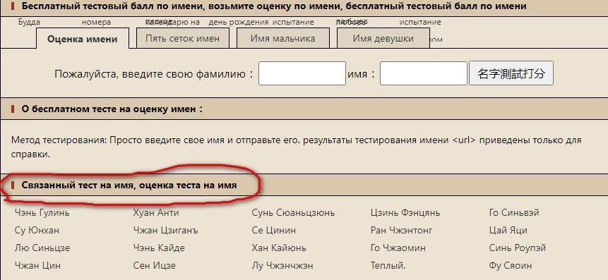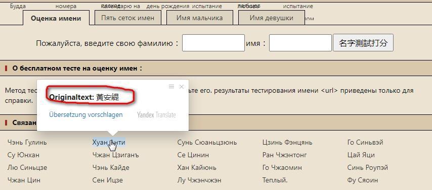 Здесь китайские товарищи проверяют имена на благозвучие. Легким движением руки перевожу страницу с помощью встроенной функции браузера и получаю примеры имён с фамилиями.