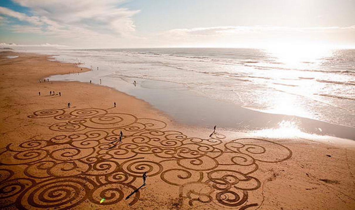Andres Amador prints ephemeral sand patterns on beaches around the world