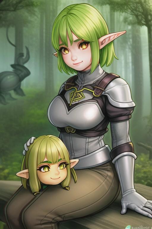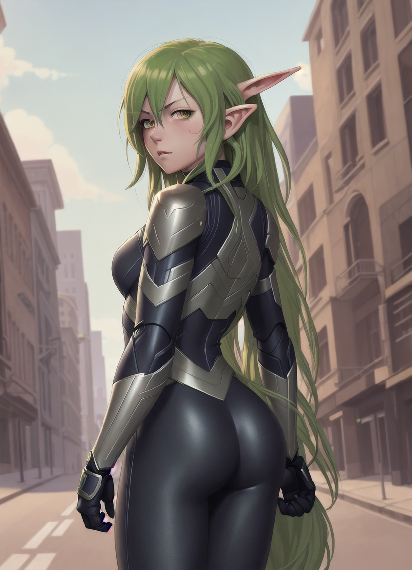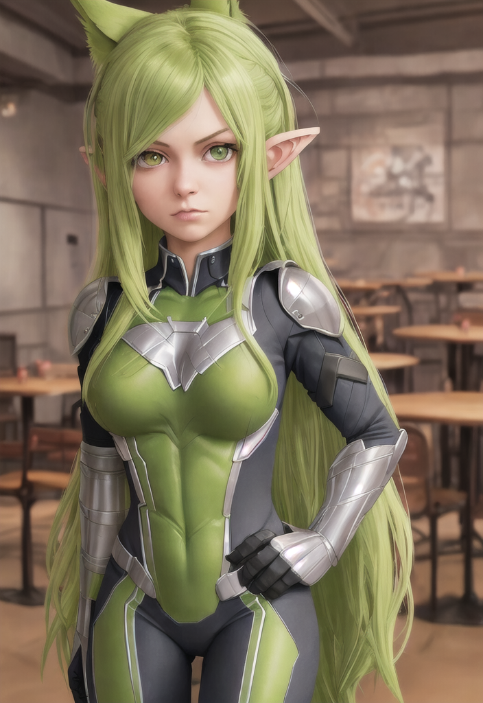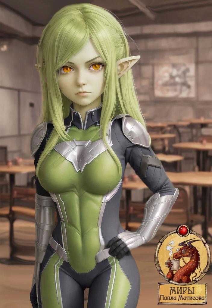 Есть вещи, которые сеть изобразить не может, либо это требует долгой настройки, либо выдает результат редко. Типичный пример - зеленый цвет кожи, как у Майи. Спустя какое-то количество попыток я сдался и перестал просить девушку с зеленой кожей. Вполне возможно, с некоторыми настройками и моделями оно и будет нормально работать, но я в тему глубоко углубляться не планирую. Так что раскрашиваю арт в гимпе. Немного коряво, конечно, но принцип обозначил выше - дешево и сердито. Аналогичной касается и глаз - их перекрасить обычно проще, чем кожу.