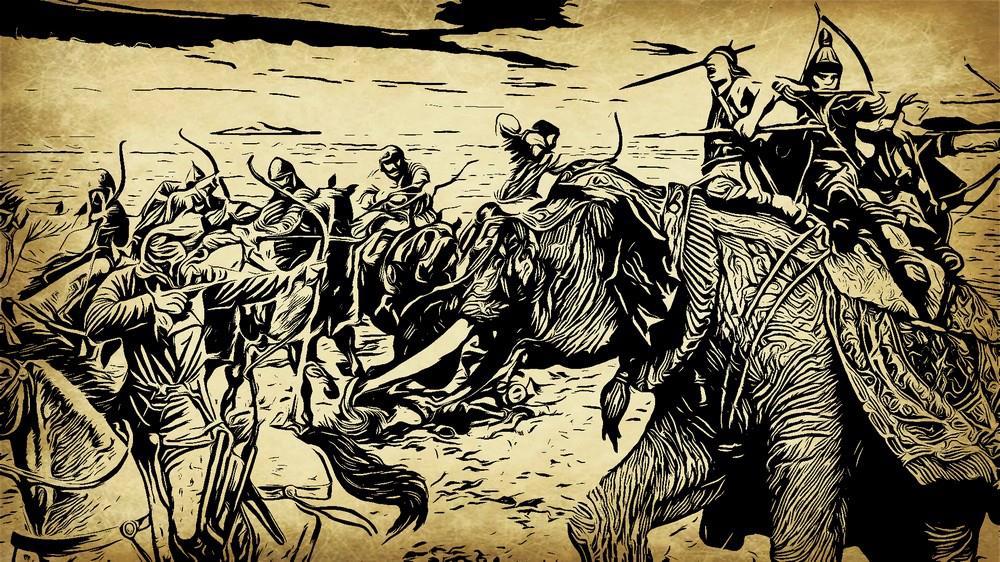 Парвата крутился на месте, пытался схватить хоботом кого-нибудь из суетившихся вокруг людей, жалящих так больно, но они старались держаться на почтительном расстоянии. Истыканный стрелами, он все больше напоминал огромного ежа. Махаут свалился на землю со стрелой в горле, но и будь он жив, обезумевший от боли слон всё равно бы не подчинялся. Ваджрасанджит, уже трижды раненый, к счастью, легко, продолжал сражаться.
