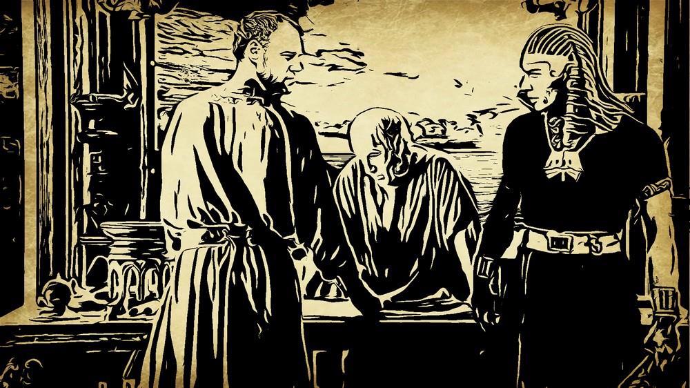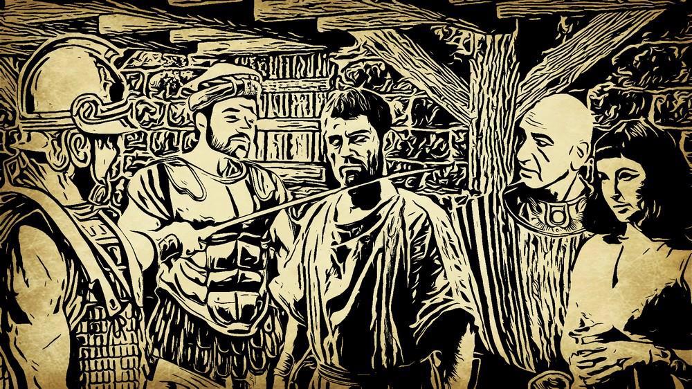 В зал ворвались вооруженные люди в льняных панцирях и фракийских шлемах. Пару рабов египтянина тут же уложили лицом вниз. Подскочили к Хорминутеру и мигом заломили ему руки за спину. Антенор не успел опомниться, как оказался прижат к стене. В зал вошёл человек в шафрановом плаще, дорогом мускульном тораксе, при мече. Шлема на нём не было, голову покрывала простая македонская каусия.