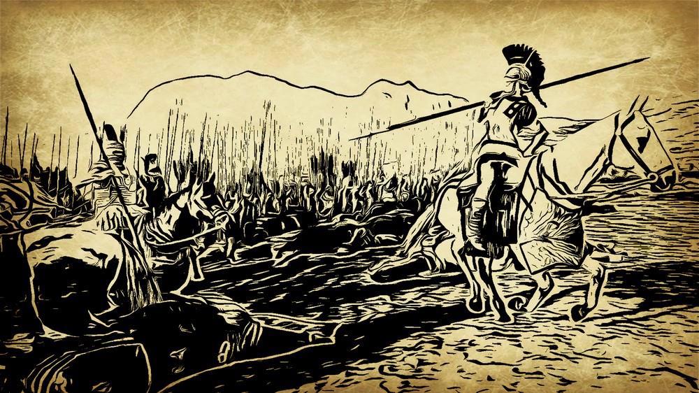 Клинки не встретились. Чужой царапнул плечо, а махайра Антенора на противоходе рассекла бедро противника. И щит того не спас. Насколько серьёзна рана врага, македонянин увидеть не успел. Лошади разминулись и Антенор схватился со следующим тарентинцем, который попытался уязвить гиппарха дротиком.