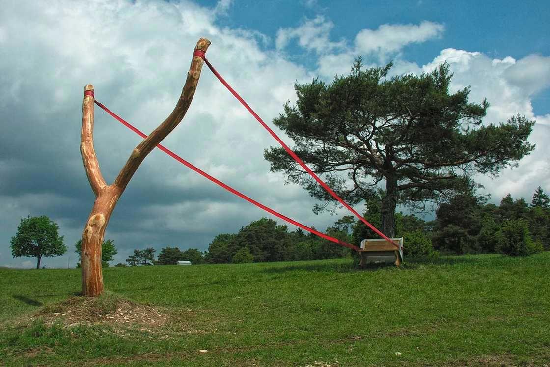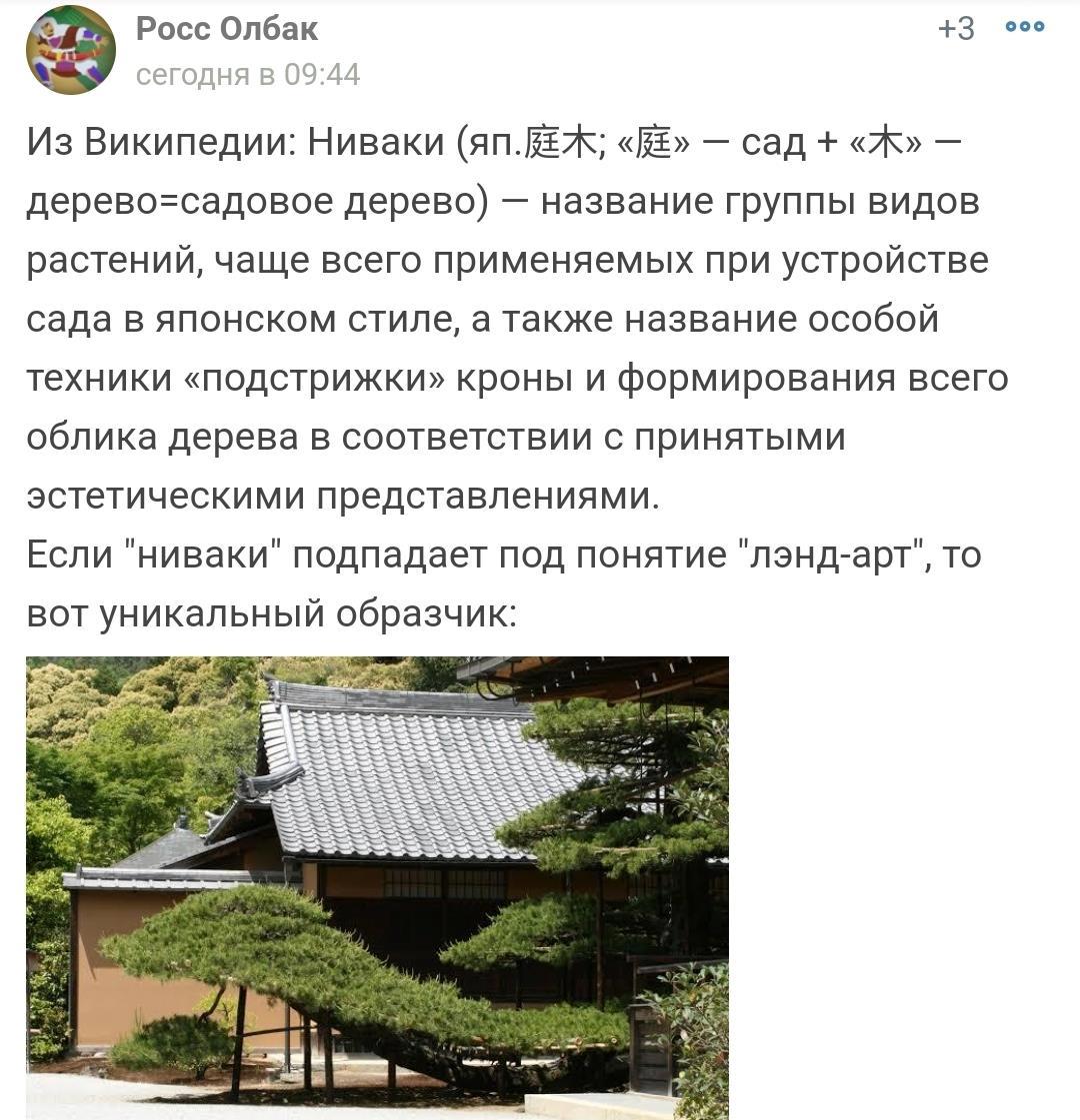 Сосна Рикусю ("Сухопутный корабль") на территории Золотого Павильона (храм Рокуондзи, Киото). По преданию, её незадолго до своей смерти посадил сёгун Асикага Ёсимицу (1358-1408). По завещанию сёгуна его загородный дворец вместе со знаменитым Золотым Павильоном перешёл в собственность дзэн-буддийской школы Риндзай. Вместе с недвижимостью к монахам попала и вышеупомянутая сосна. Вот уже более шести веков за ней терпеливо ухаживают, сохраняя уникальную форму дерева. По другой легенде сосна первоначально была ...бонсаем, который сёгун вручил новым собственникам с просьбой пересадить крошечное деревце в землю и вырастить его до обычных размеров, сохранив оригинальную форму, что и было исполнено. Какому из преданий верить и верить ли вообще — вопрос открытый. Фактом остаётся само уникальное дерево, увидеть которое может всякий, кто посетит Золотой Павильон.