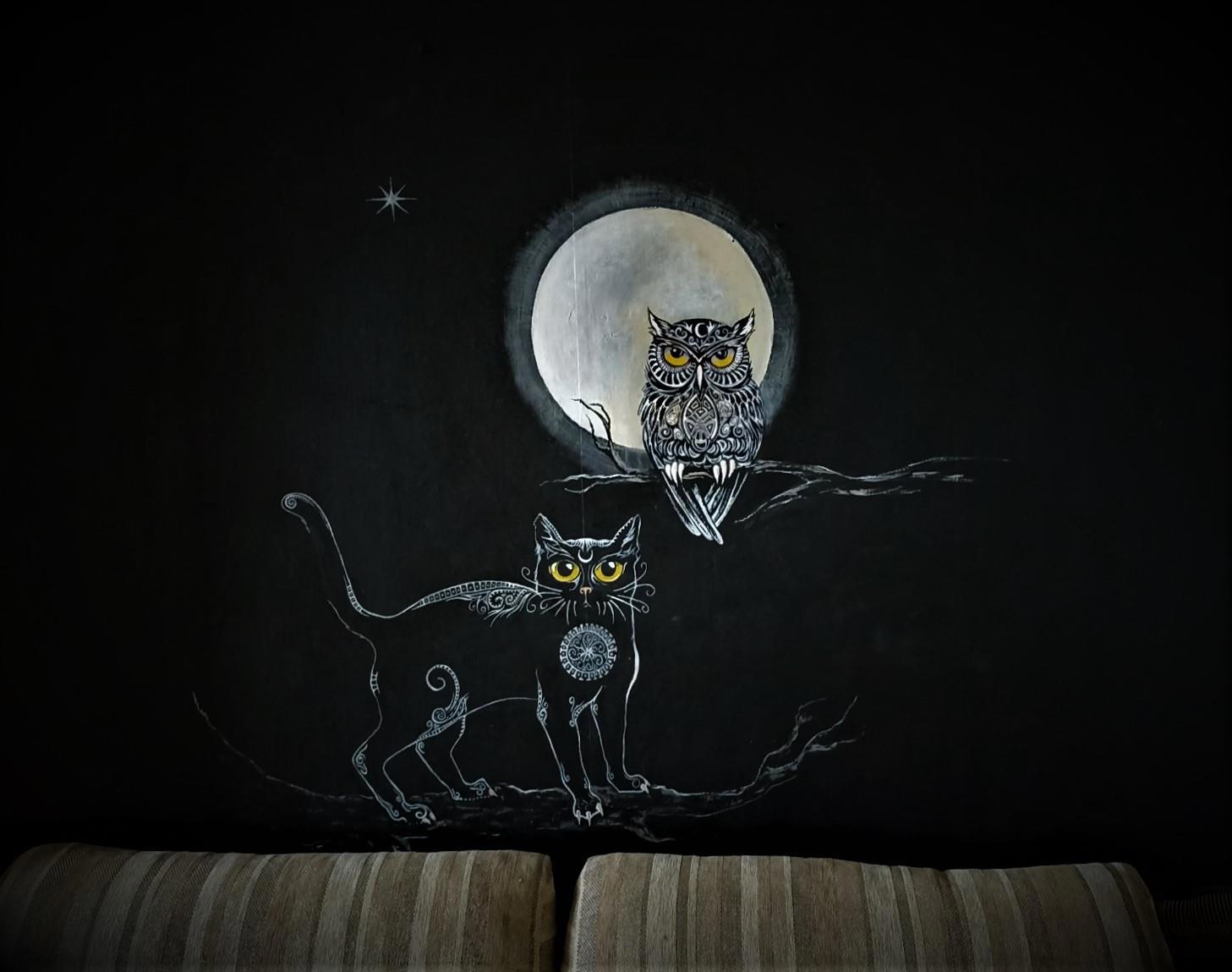 На форуме много прекрасных профессиональных художников, чьи работы искренне восхищают, так что показывать свой примитив крайне неловко. Если можно, сильно не ругайте и строго не судите мой впроцессник, посредственные свои способности я оцениваю трезво и понимаю, что хвастаться особо нечем. Просто в поисках гедонии включаю по вечерам старую музыку и рисую над кроватью, на обоях, (потом когда-нибудь заклею), а кошка-липучка помогает, вечно вся извозится в краске, а после выгрызает колтуны. Соответственно, вспомнился Анатолий и эта история, которой решила с вами поделиться.