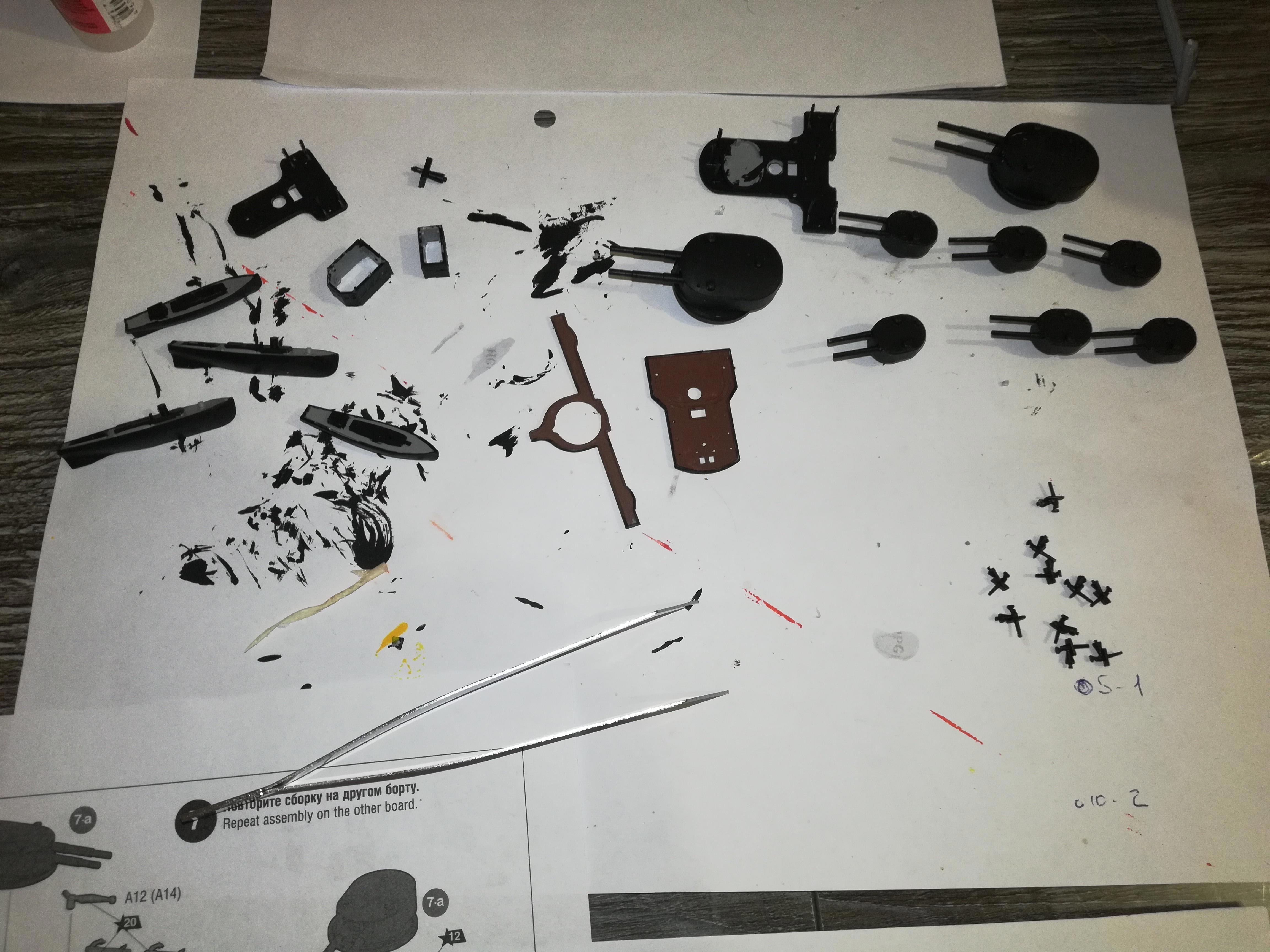 Около месяца, почти каждый вечер, я отключался от реальности. Это было восхитительно! Когда часок, когда два-три, я строгал детальки, клеил их, наслаждаясь божественным запахом клея, красил то, что потом красить будет невозможно. Порядок действий был не сильно продуман, я пользовался штатной инструкцией. Поэтому так долго. Если бы сразу все, что нужно, собрал до полуготовности, а потом покрасил. А то склеил пару деталей, склеил ещё пару, потому первые покрасил черным, помыл кисть, покрасил вторые деревом, потом склеил еще детальки, потом еще, потом покрасил желтым, помыл кисть, покрасил черным, помыл… короче дурная голова это дурная голова. Но процесс доставлял кучу положительных эмоций. Из головы были выдавлены мысли про проблемы на работе и вообще весь негатив. Это как медитация, точно – как медитация.