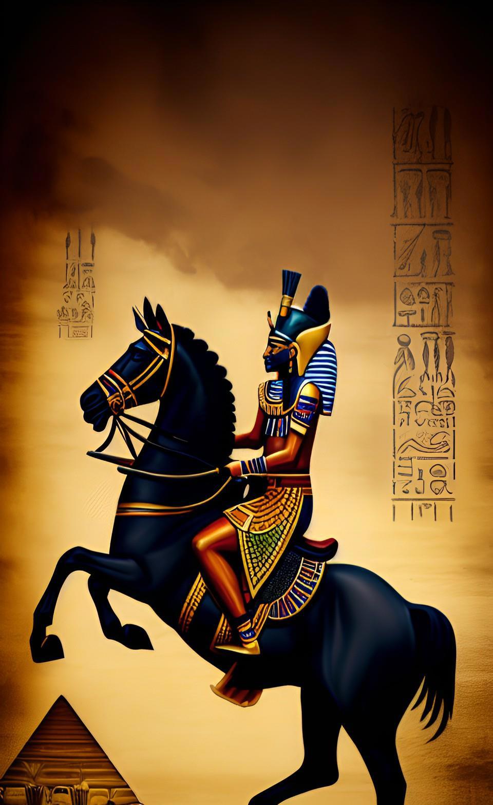 А еще я тут попытался сгенерировать в нейросети фараона на колеснице. Но нейросеть категорически отказывается такую картинку воспроизводить. Зато фараона верхом на коне — это пожалуйста, это мы могем! Только верховая езда в Древнем Египте была не в почете. На колесницах рассекали