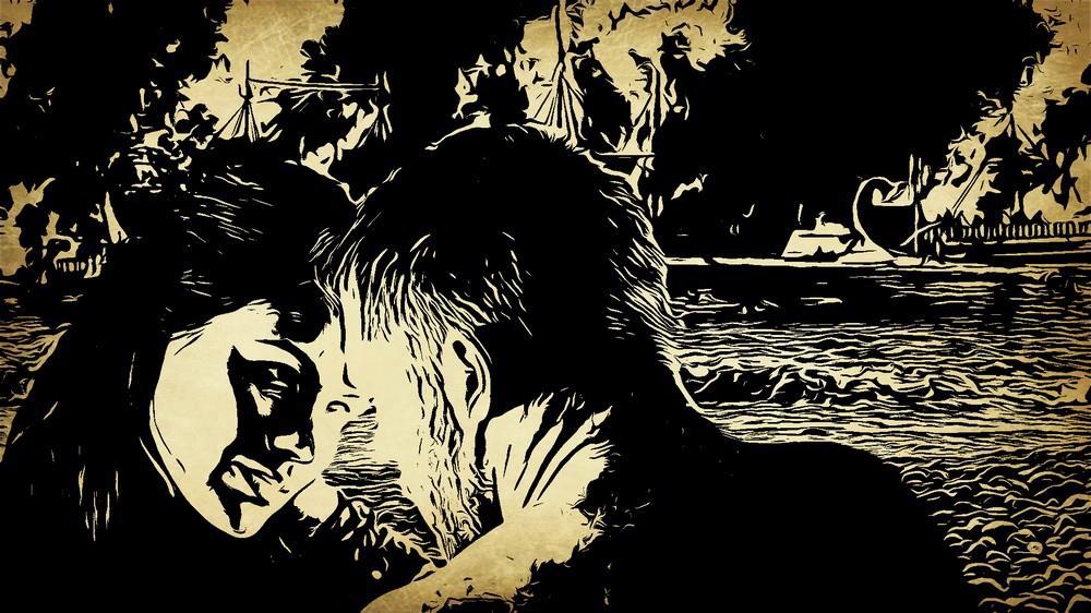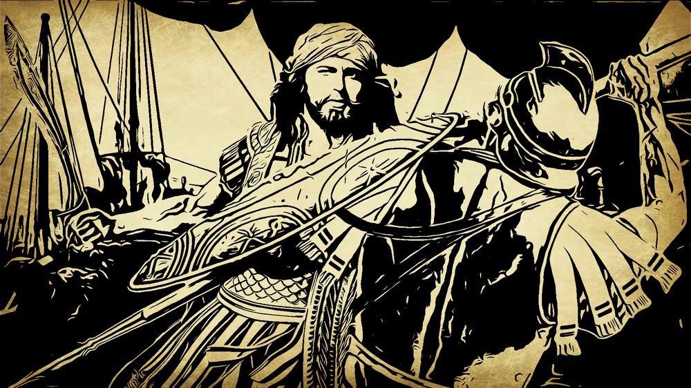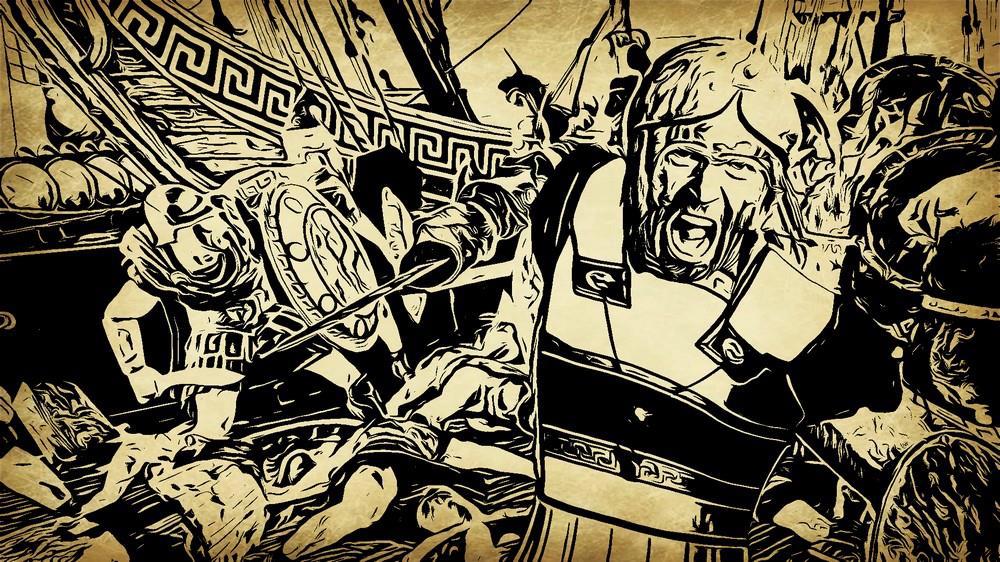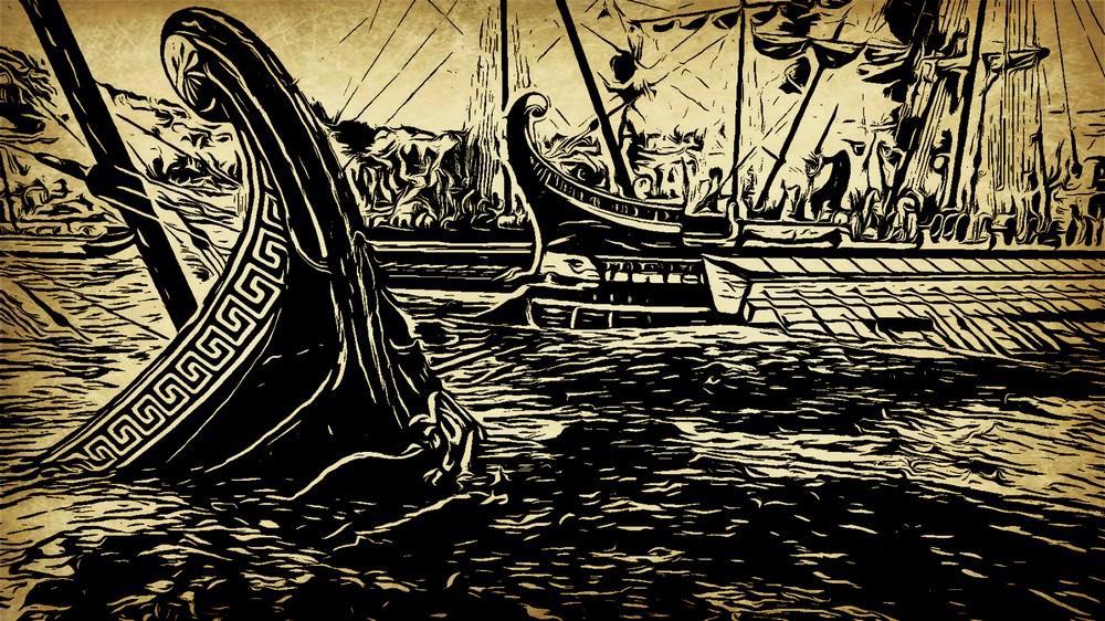 Сто шестьдесят шесть весел, на каждом из которых сидело по три гребца, вспенили воду. «Каллиройя», флагманская эннера Менелая, на носу которой красовалась золотая женская фигура с лицом Таис, вздрогнула всем своим громадным телом и двинулась вперёд. Чуть поодаль, смещаясь влево шёл «Астрапей», «Мечущий молнии», корабль Поликтета, столь же громадный, как и «Каллиройя». Ему предстояло возглавить левое крыло.