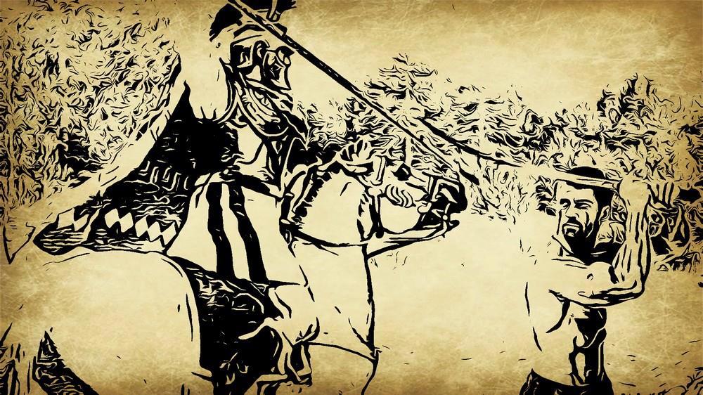 Он поднялся. Очутился за спинами египтян. Немного их осталось. И враг недалеко. Два шага. Раз. Два. Вот и драка. И тот самый здоровяк, который его...