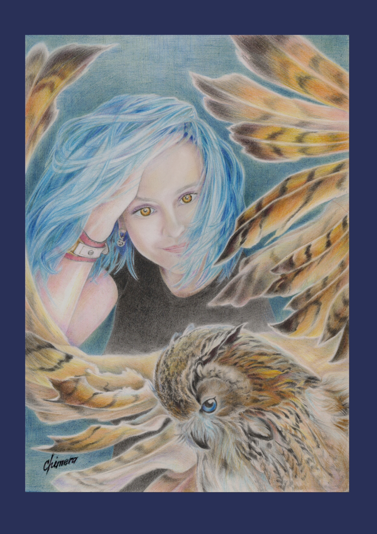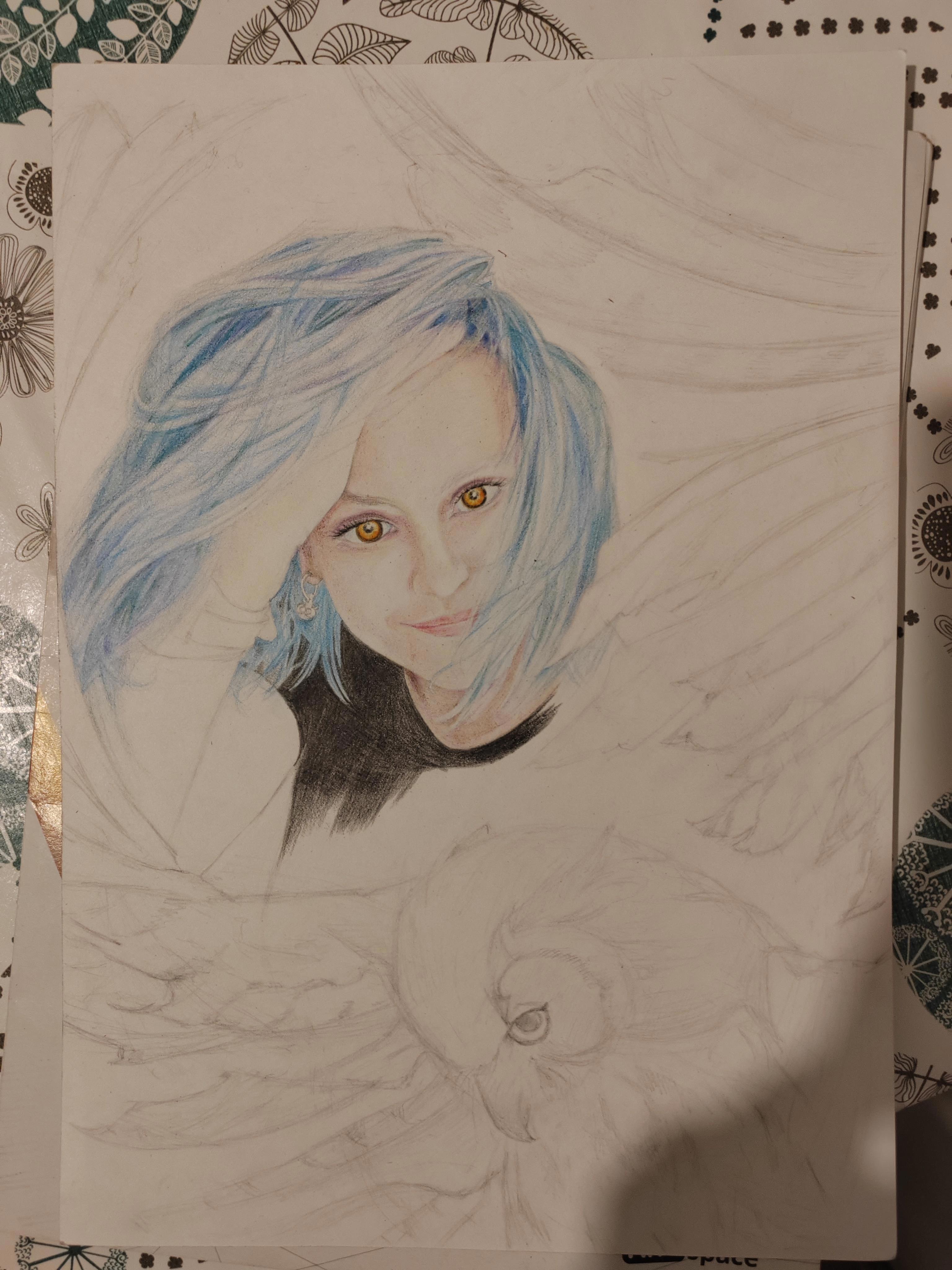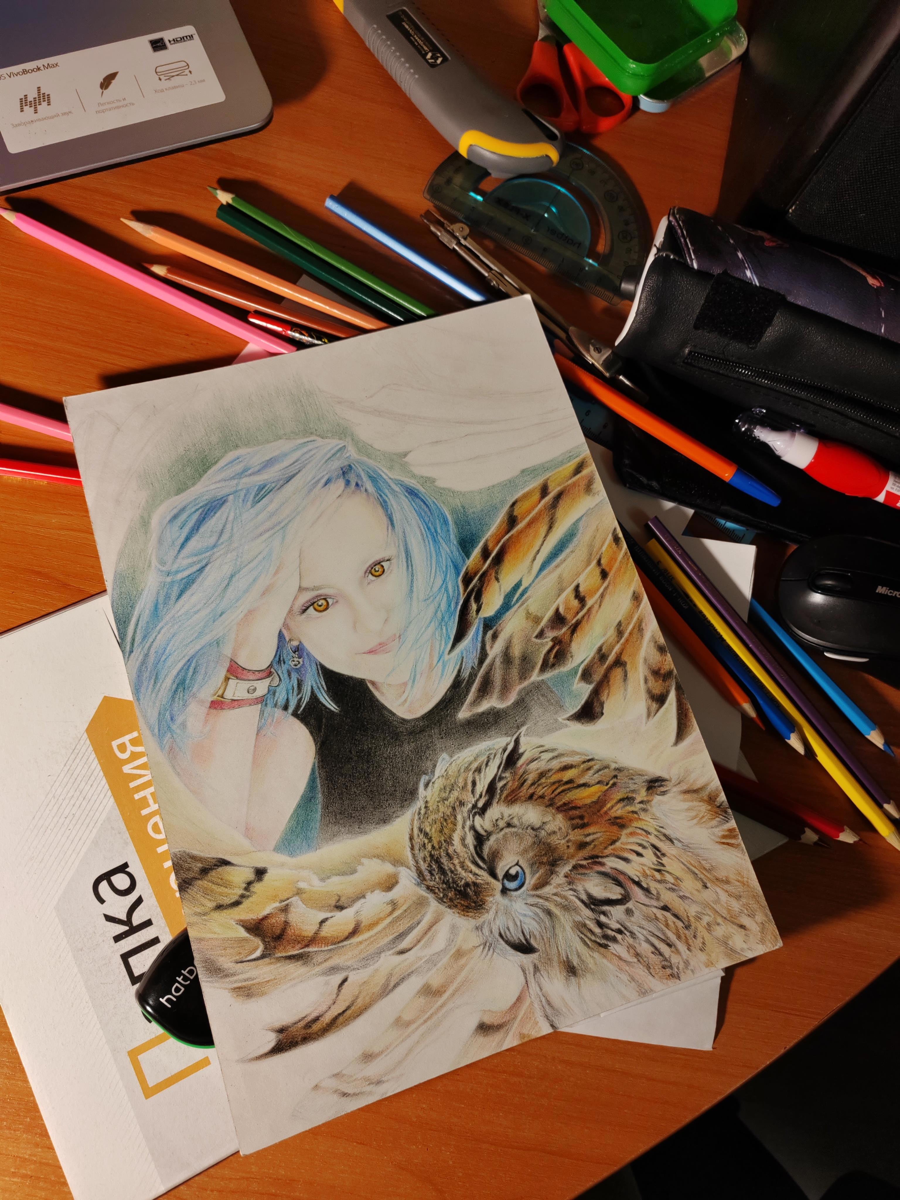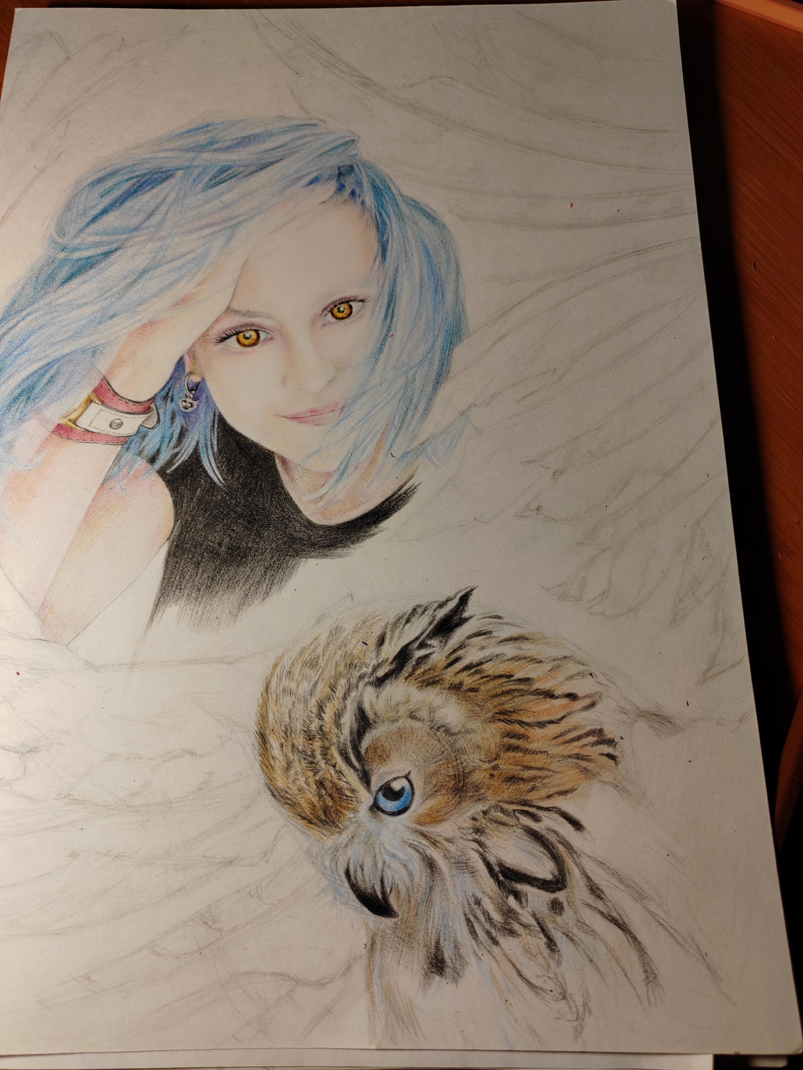 Что же сделала я? Конечно, взяла и просто нарисовала ещё одну сову в подарок, а точнее двух (портрет самой девы Совы и её фамильяра).