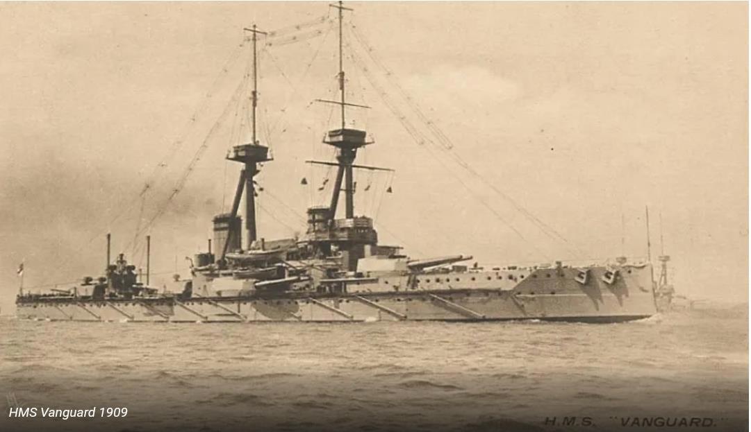 Следующий HMS "Vanguard " был спущен на воду в 1909-м году и был одним из трёх линкоров класса "St. Vincent", третье поколение дредноутов.