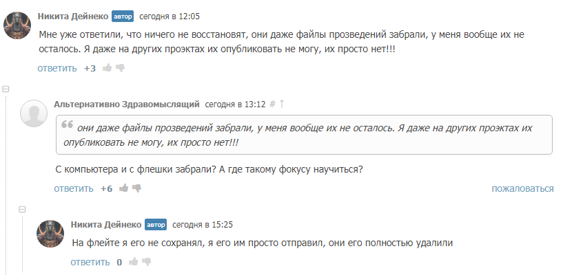 На вопросы о том, где можно почитать эту книгу отдельно наш замечательный писатель пишет "администрация удалила все файлы. Их больше не осталось". Не верите? Смотрите скрин.