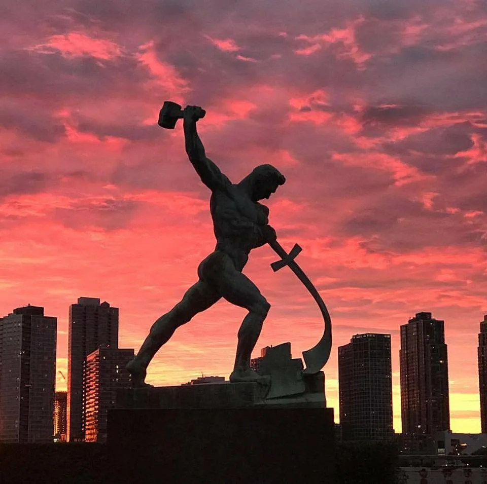 А почему заблуждение? Потому что настоящая концовка происходит в скульптуре «Перековать мечи на орала», где рабочий ломает не нужный более меч, чтобы превратить метал во что-то полезное в мирной жизни.