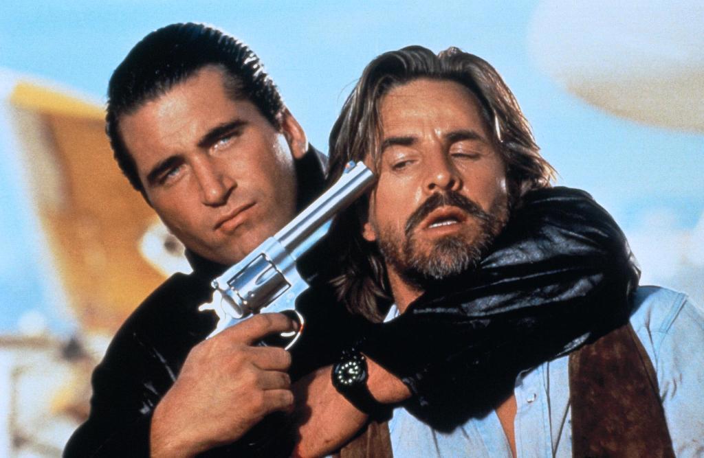 Дрянь из этого фильма называлась «Голубой лёд». Микки Рурк ещё был звездой, носившей собственное лицо, а Дон Джонсон что тогда, что сейчас остался с тем же градусом мачо-харизмы. Это кинцо сразу вспомнят не все, но не знать его, помня эпоху видаков – просто нельзя.