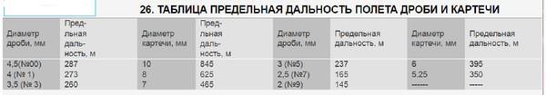 В. Е. Маркевич, опираясь на французские опыты капитана Журне, пишет, что круглая пуля из охотничьего ружья 12-го калибра (18,5 мм) летит на 1 171,5 м, 16-го калибра (17,1 мм) - 1 100,5 м.
