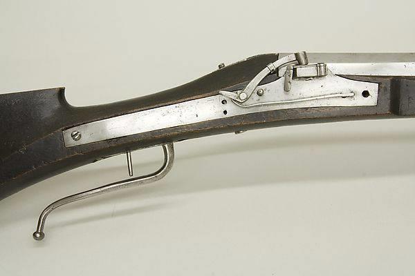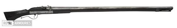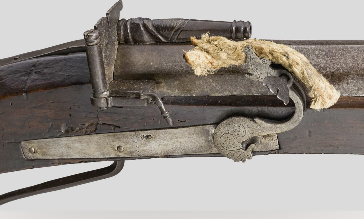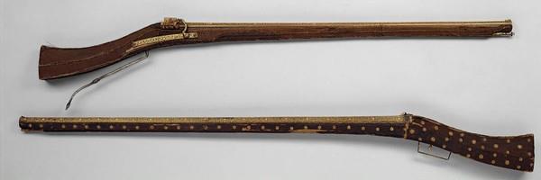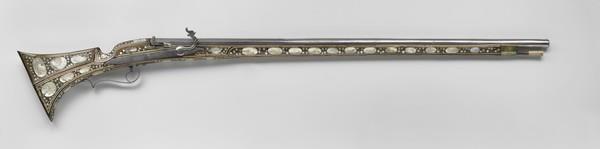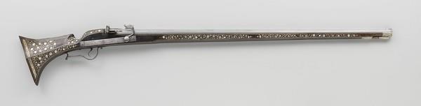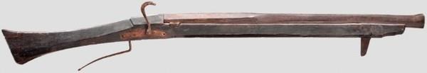 Фитильное ружьё. Германия, XVI – XVII вв. Калибр 17,5-мм. Вес 5244,7 г. Метрополитен-музей, Нью-Йорк. Калибр и вес данного оружия позволяют причислить его как к мушкетам, так и к аркебузам.