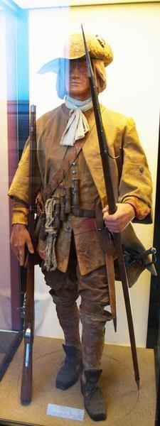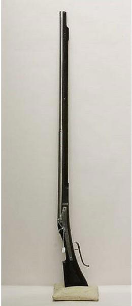 Гладкоствольный мушкет с фитильным замком, 1645 год, Англия. Общая длина оружия 1610 мм (63.386 in), длина ствола 1245 мм (49.016 in), вес 6072 грамм, калибр около 20 мм (.79 in).