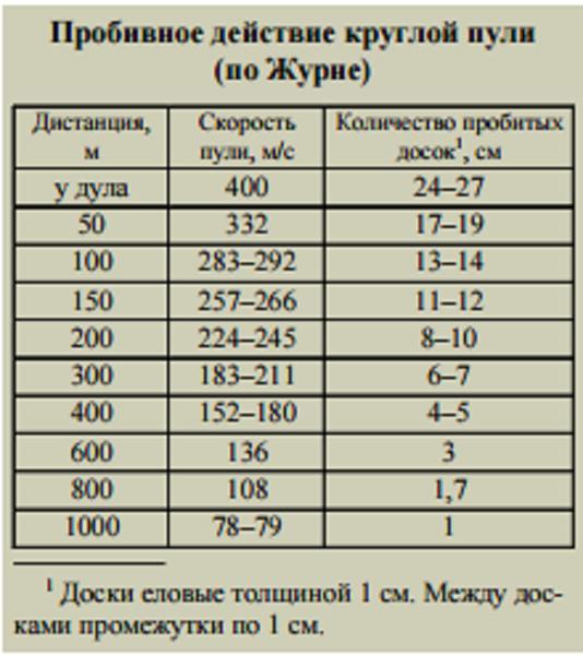 Однако, раневая полость круглых пуль на большей дистанции резко уменьшалась. Так, пуля весом 27 г г на дистанции 100 м образовала полость объемом 155 куб. см.