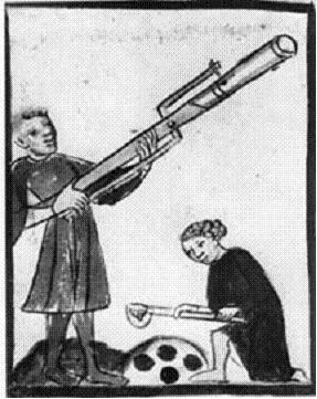 Поэтому в 14-15 вв огнестрел в полевом бою как правило был составной частью рибодекинов - одноосных повозок, снабженных щитом, копьями и несколькими стволами. Стволы можно было снимать с рибрдекинов, чтобы пальнуть при необходимости в нужном направлении не разворачивая рибодекин. Для этого уже в самом начале 15 в появился простейший Z-образный фитильный замок.