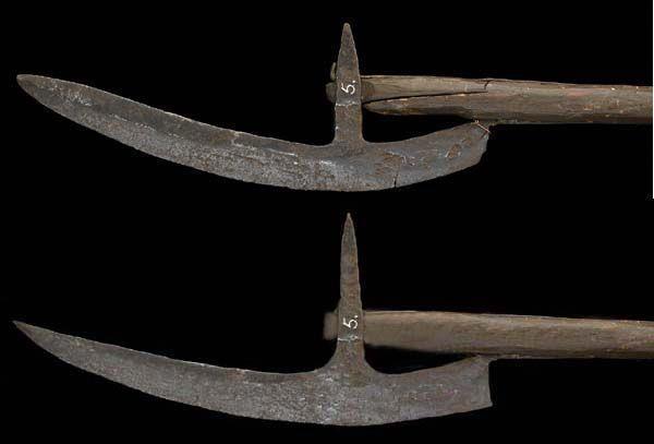 Так предписывалось держать ружье со штыком при отражении кавалерийской атаки. Штыком кололи налетающую лошадь в морду. Лошадь при этом останавливается, поднимается на дыбы и бьет пехотинца передними копытами. Указанный способ хвата ружья позволяет пешему солдату поразить лошадь в шею, не попав под удар копыт. Так собственно было в теории.