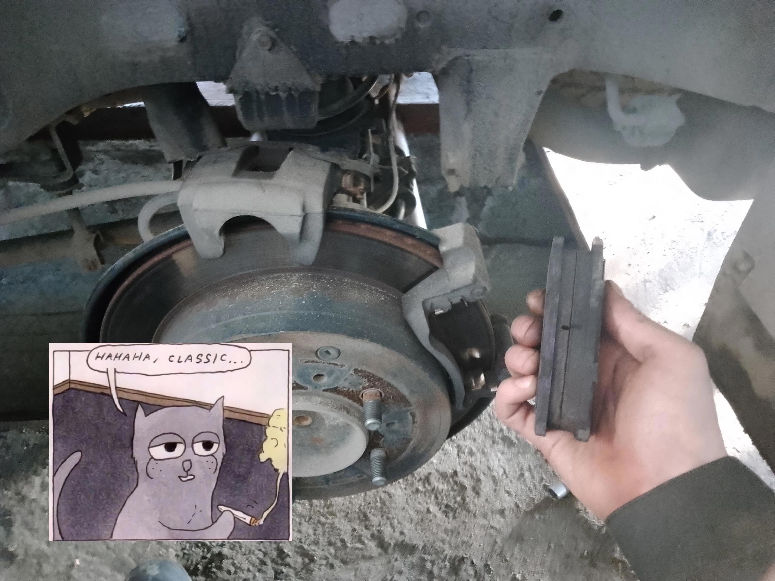 Ставим новые колодки. Колодки - Nibk. Потерев их друг об друга фрикционом, заметил что колодки тупо скользят. Хорошие колодки создают соправтивление, небольшое, но оно есть, а эти - как на санках с горки, так же легко скользили. Мне кажется тормозить это будет весьма и весьма плохо, поэтому колдоки Nibk я бы брать не стал...