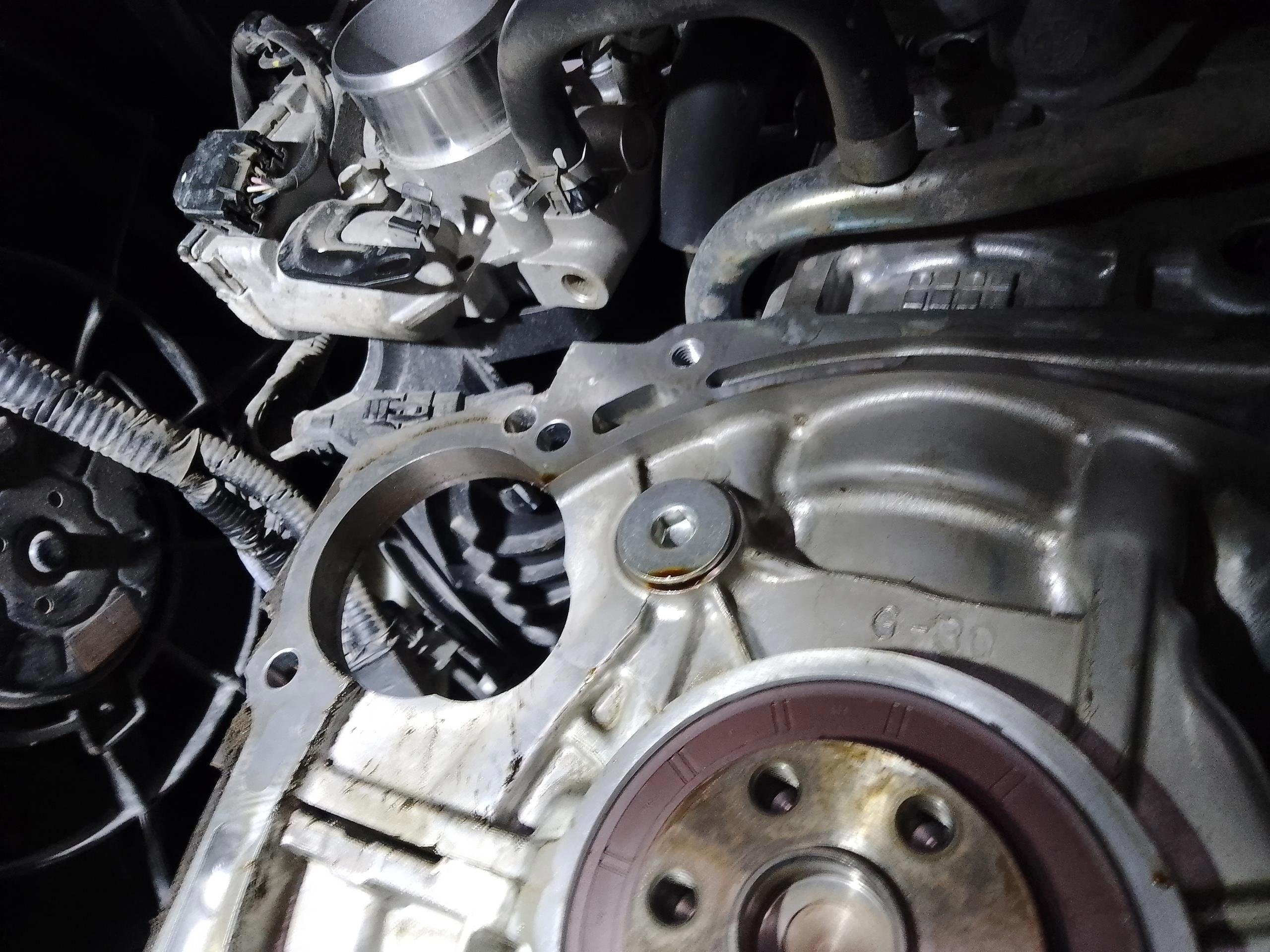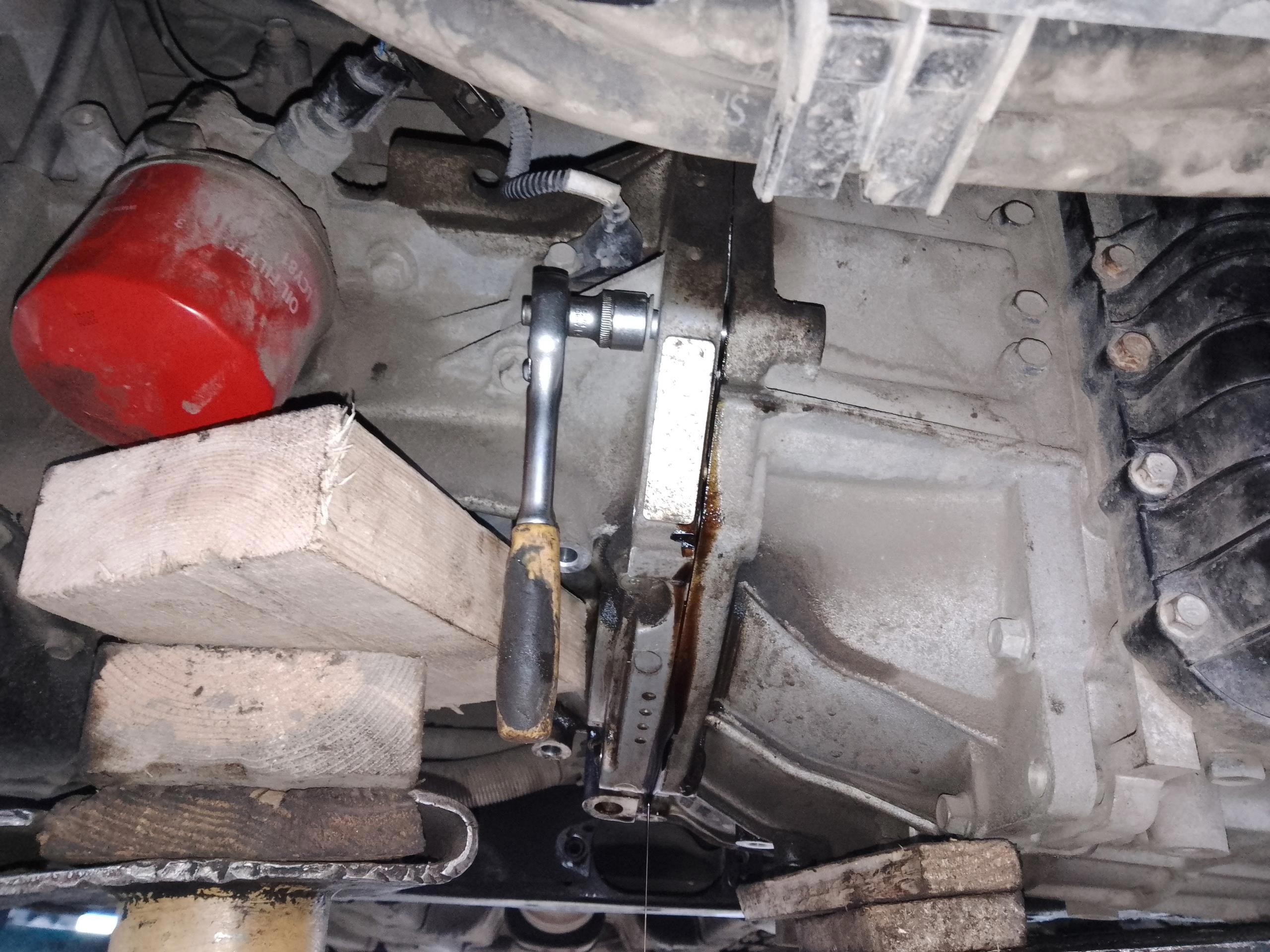Снимаю пластину крепления гидротрансформатора, исследую сальник: сухой. Хмм. Стоп, а это что?..