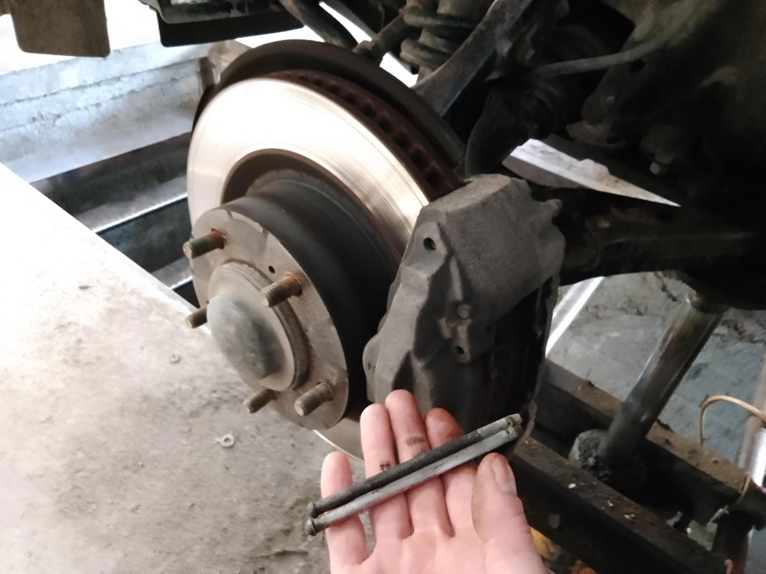 Следующим был Лексус RX450 с заменой колодок. Спрашиваю директора, какие менять, левые, или правые? Говорит меняй внутренние, спереди и сзади. Ок, внутренние так внутренние, с переду на зад, так с переду на зад. Самые простые в плане замены колодок 4хпоршневые суппорта. Те, что не плавающие. Самое сложное - не потерять и правильно поставить стопоры и пружинку. Минимум работы.