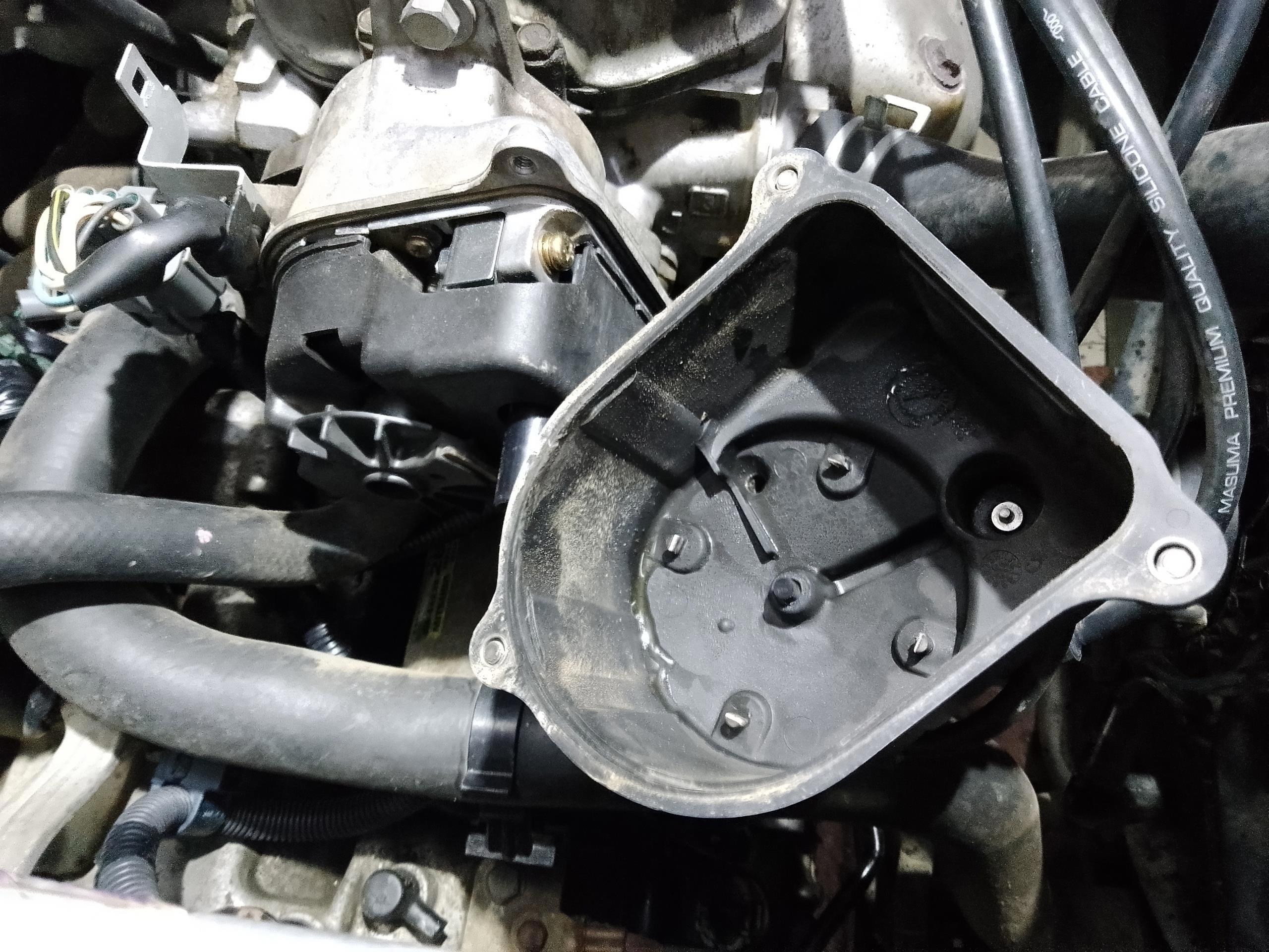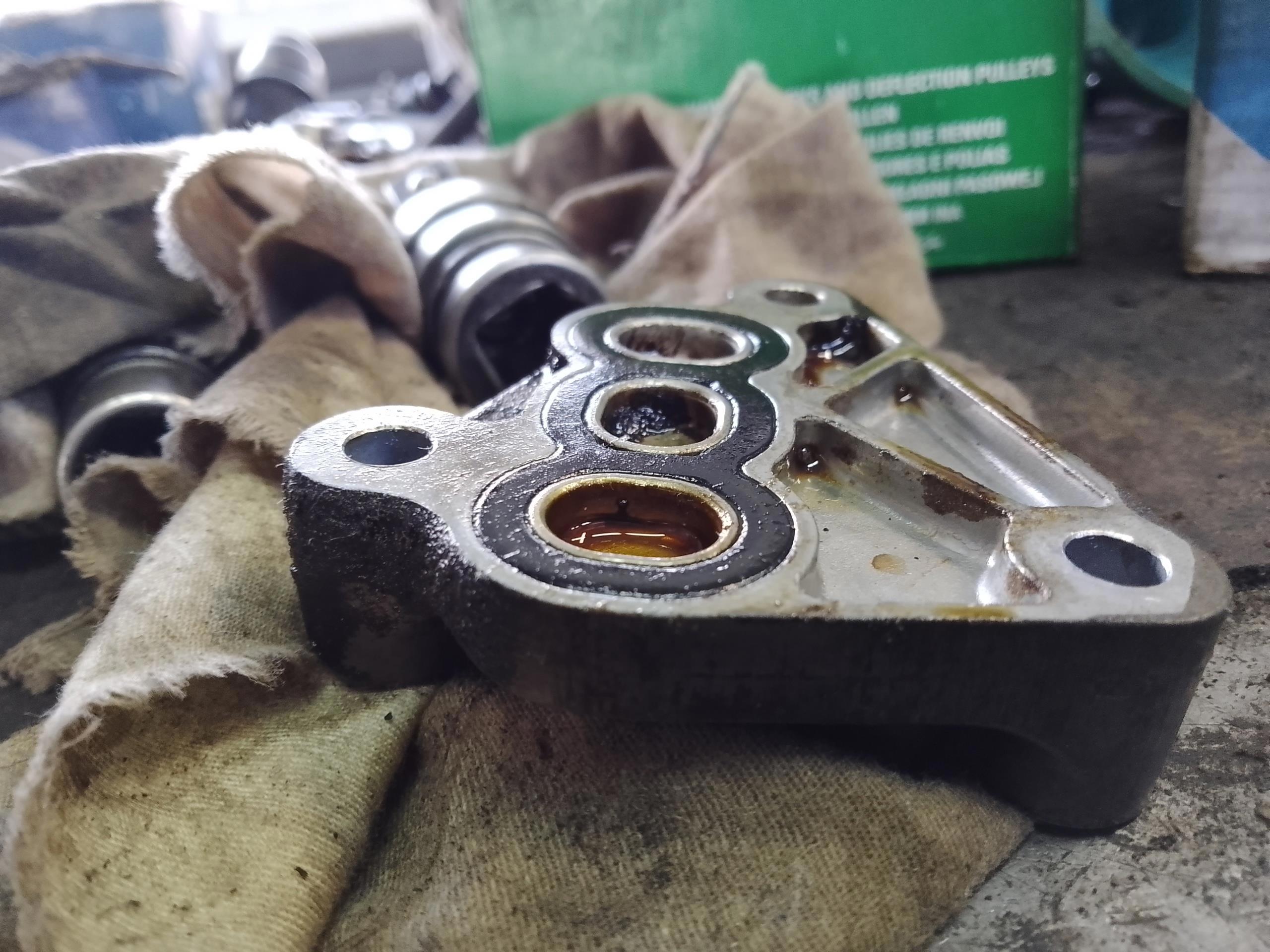 Так же требовалось найти место утечки масла с двигателя, в следствии чего тыльная сторона мотора и коробка были похожи на беляш (от количества масла). Откуда может течь? Либо с трамблёра, либо с клапана VTEC. Тут клапана нет, но есть заглушка, которую я и открутил. Совершенно плосский уплотнитель показал, что я был прав.