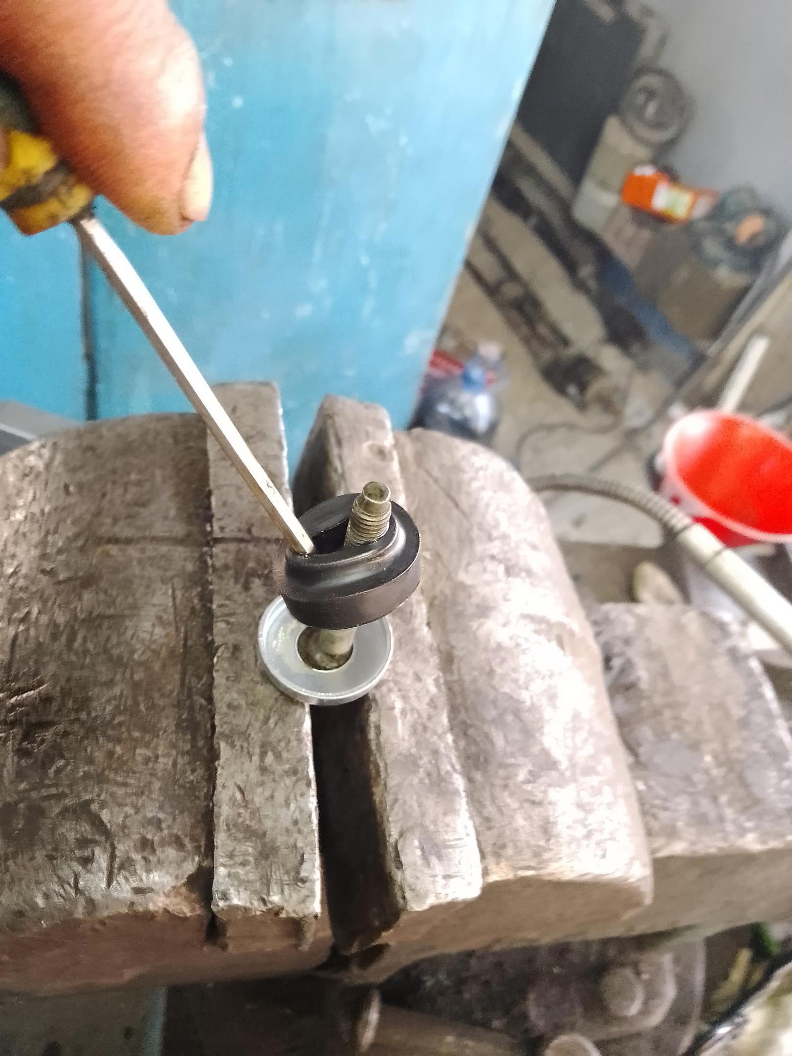 Простите за качество фото... Телефон фокусируется куда угодно, только не туда, куда надо. Новые, тщательно смазав маслом, напяливаем тонкой отверточкой.