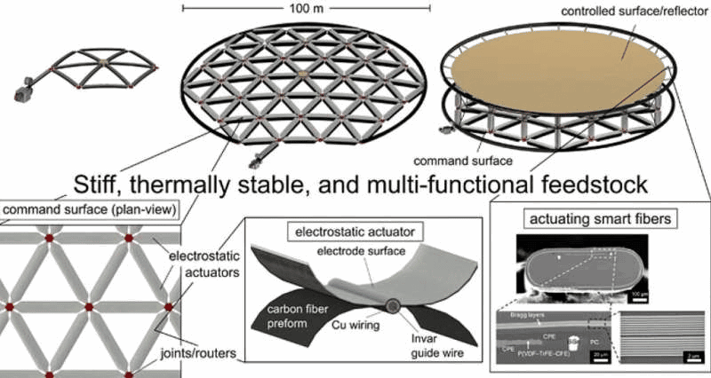 Захари Кордеро (Zachary Cordero) из Массачусетского технологического института (MIT) предложил создать телескоп со 100-метровым главным зеркалом, которое можно будет автономно сконструировать прямо в космосе.