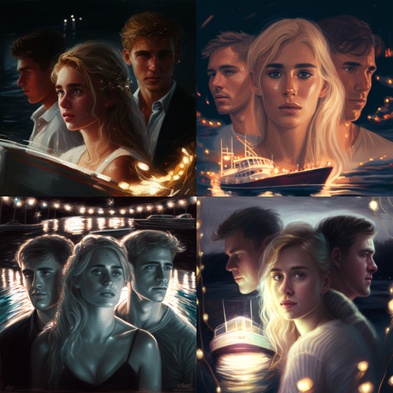 Пы.сы. Вновь поигралась с Нейросетью и хочу показать вариант любовного треугольника (одного из…) в «Гирлянде томных лампочек»