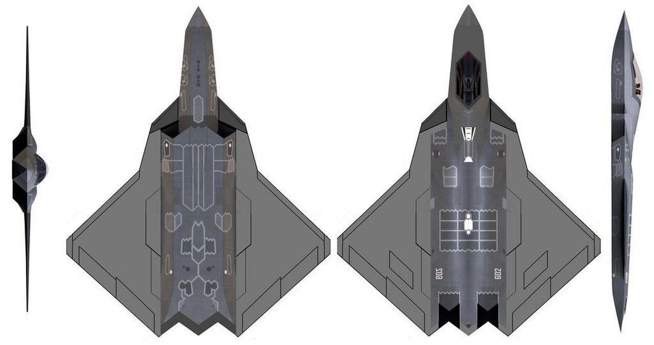 Он самый забавный, потому что здесь нет не только стабилизатора, но нет и двигателя с изменяемым вектором тяги. Нет и приличной механизации крыла. То есть вообще непонятно – а это вообще, что такое и для чего оно нужно? Зато есть странная форма… которая людям моего поколения сразу напоминает небесную легенду США – стратосферный гиперзвуковой самолёт-разведчик SR-91 «Aurora». Про него так и осталось неизвестным, был он или нет? Наверное, всё же нет. Но картинки в сети есть. Я выбрал ту, которая не из «вики»: